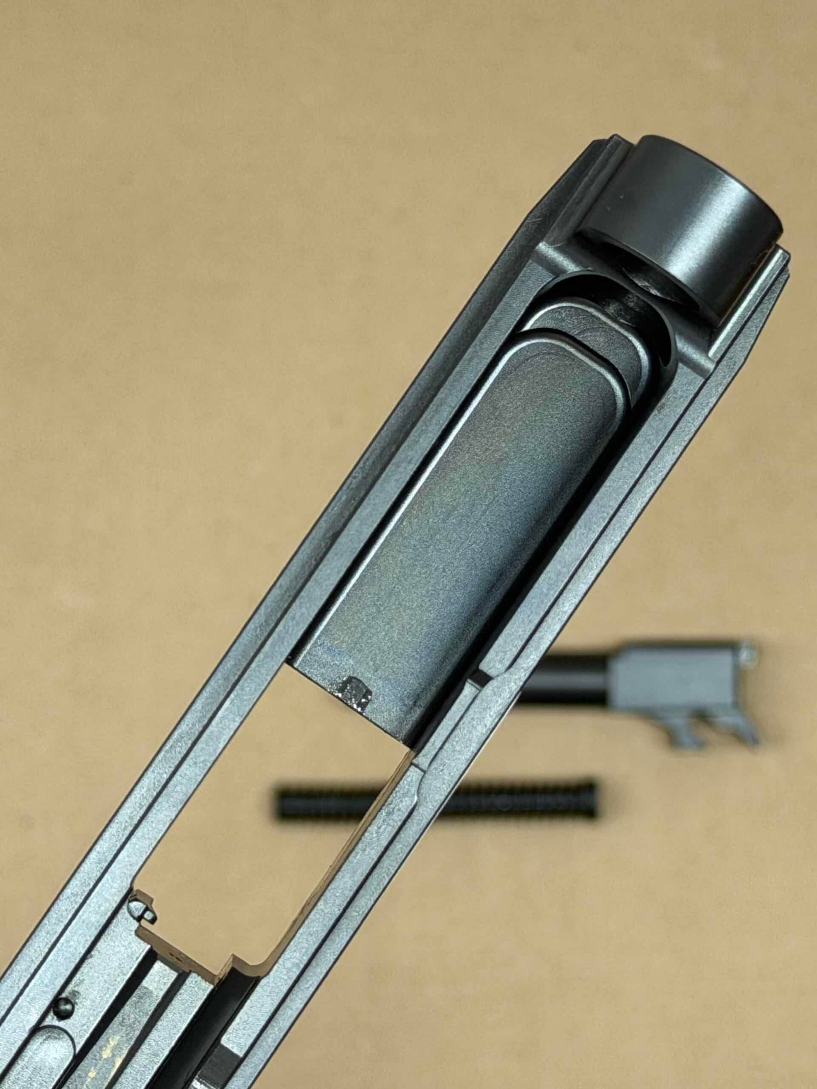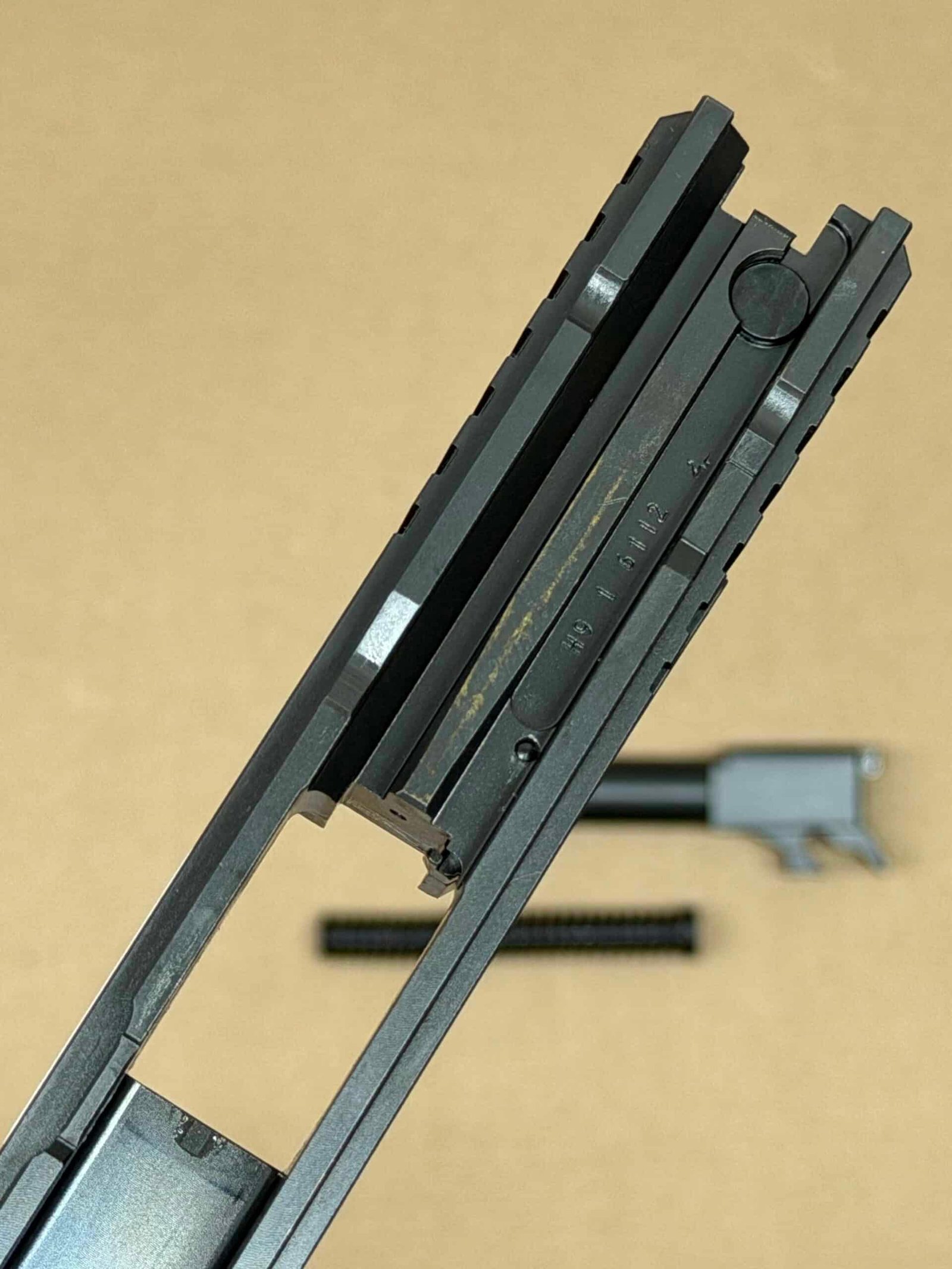 - Complete Slide Assembly – Includes slide, internal components, barrel, and recoil spring assembly.
