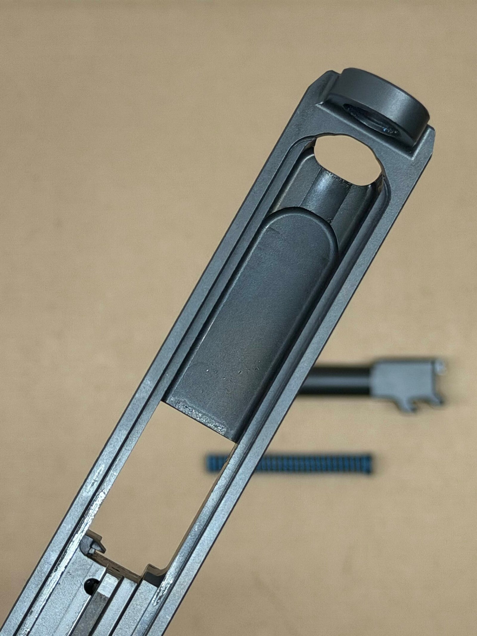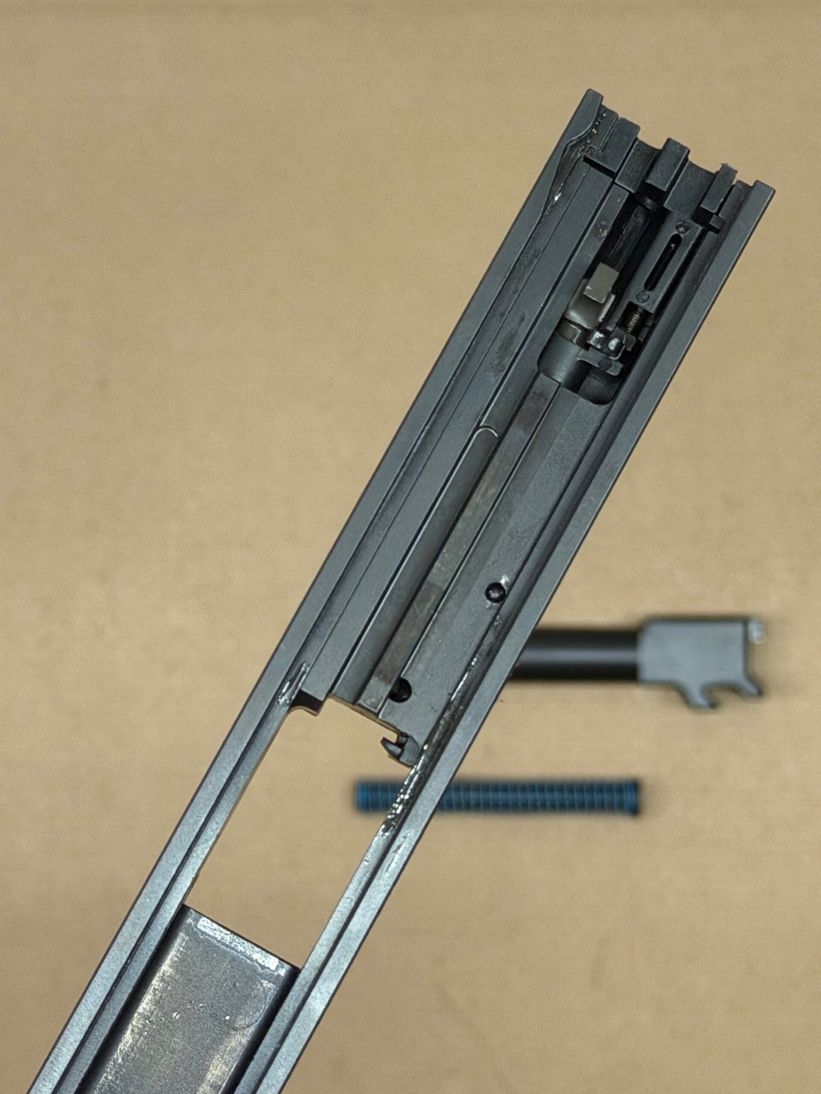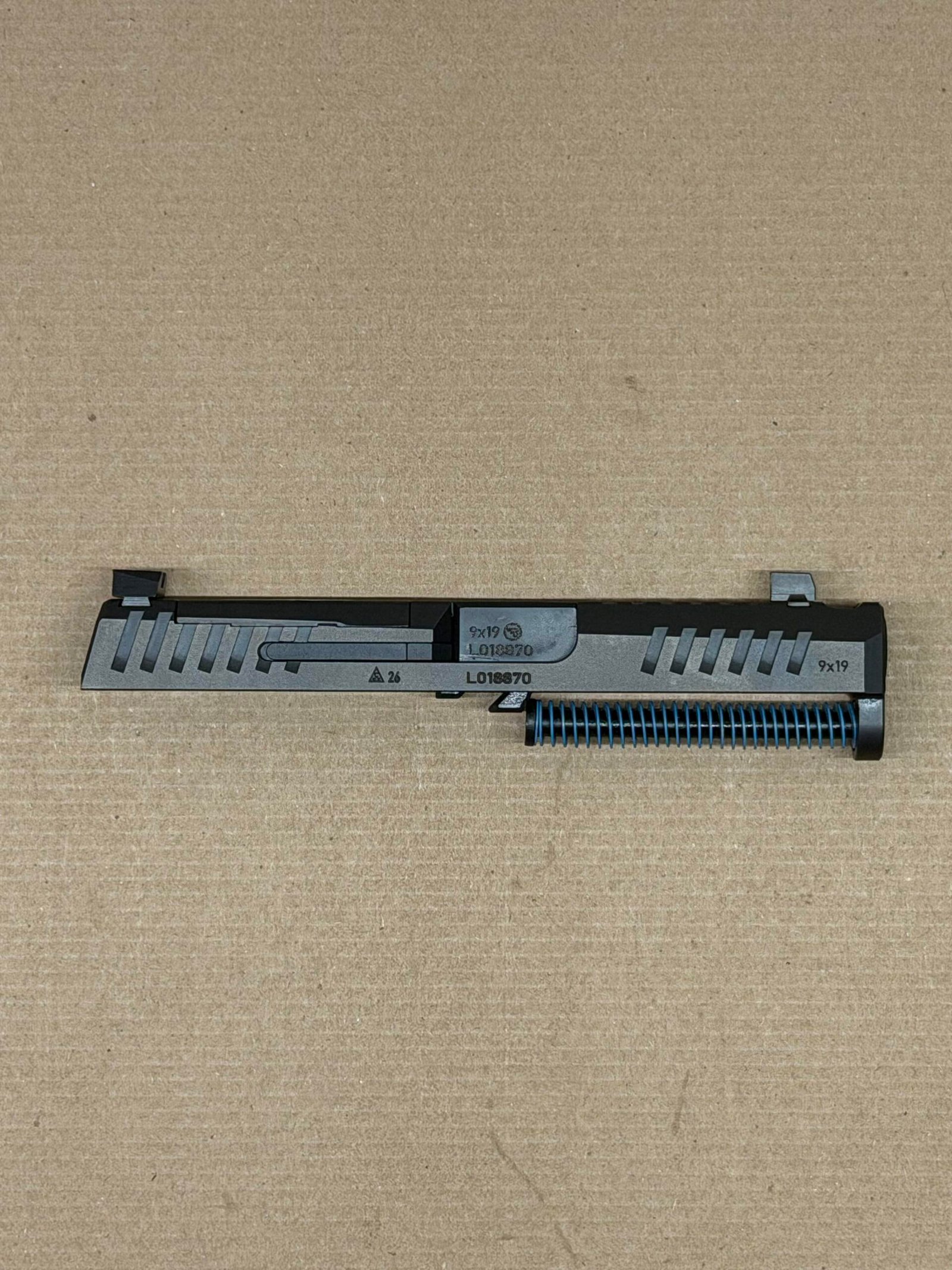 - Complete Slide Assembly – Includes slide, internal components, barrel, and recoil spring assembly.