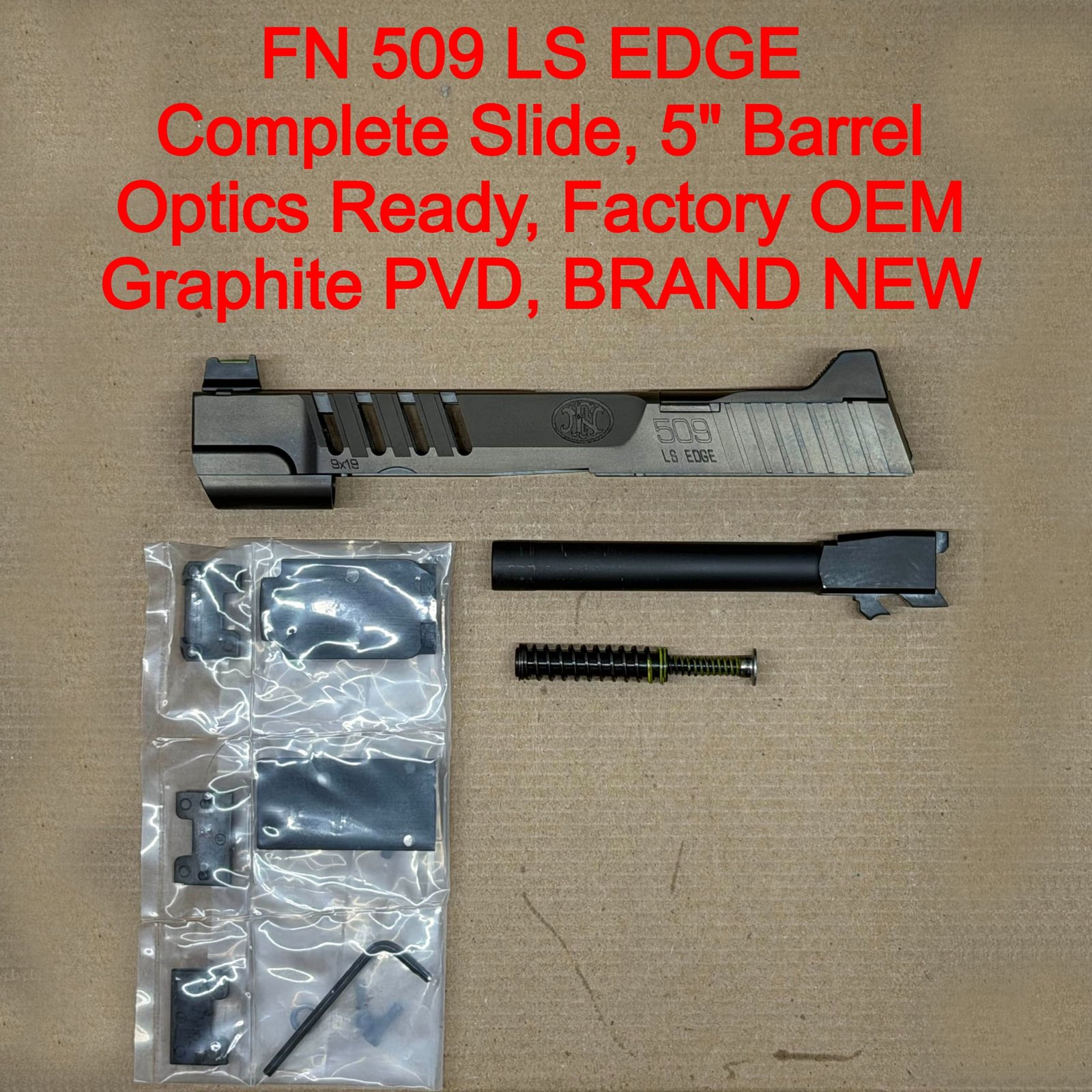 FN 509 LS Edge OEM Complete Slide Assembly – Optic Ready Graphite PVD – BRAND NEW