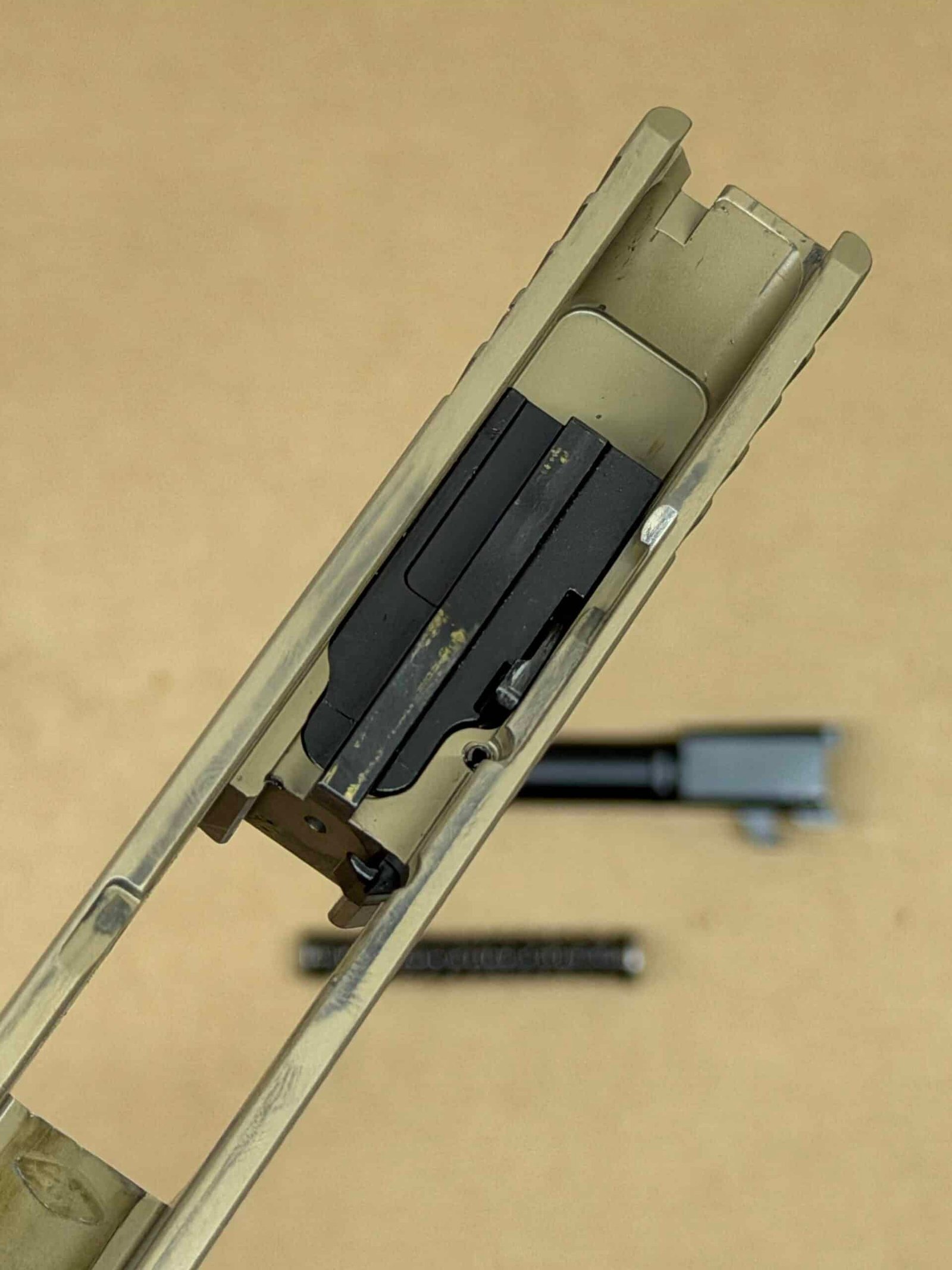 - Complete Slide Assembly – Includes slide, internal components, barrel, and recoil spring assembly.