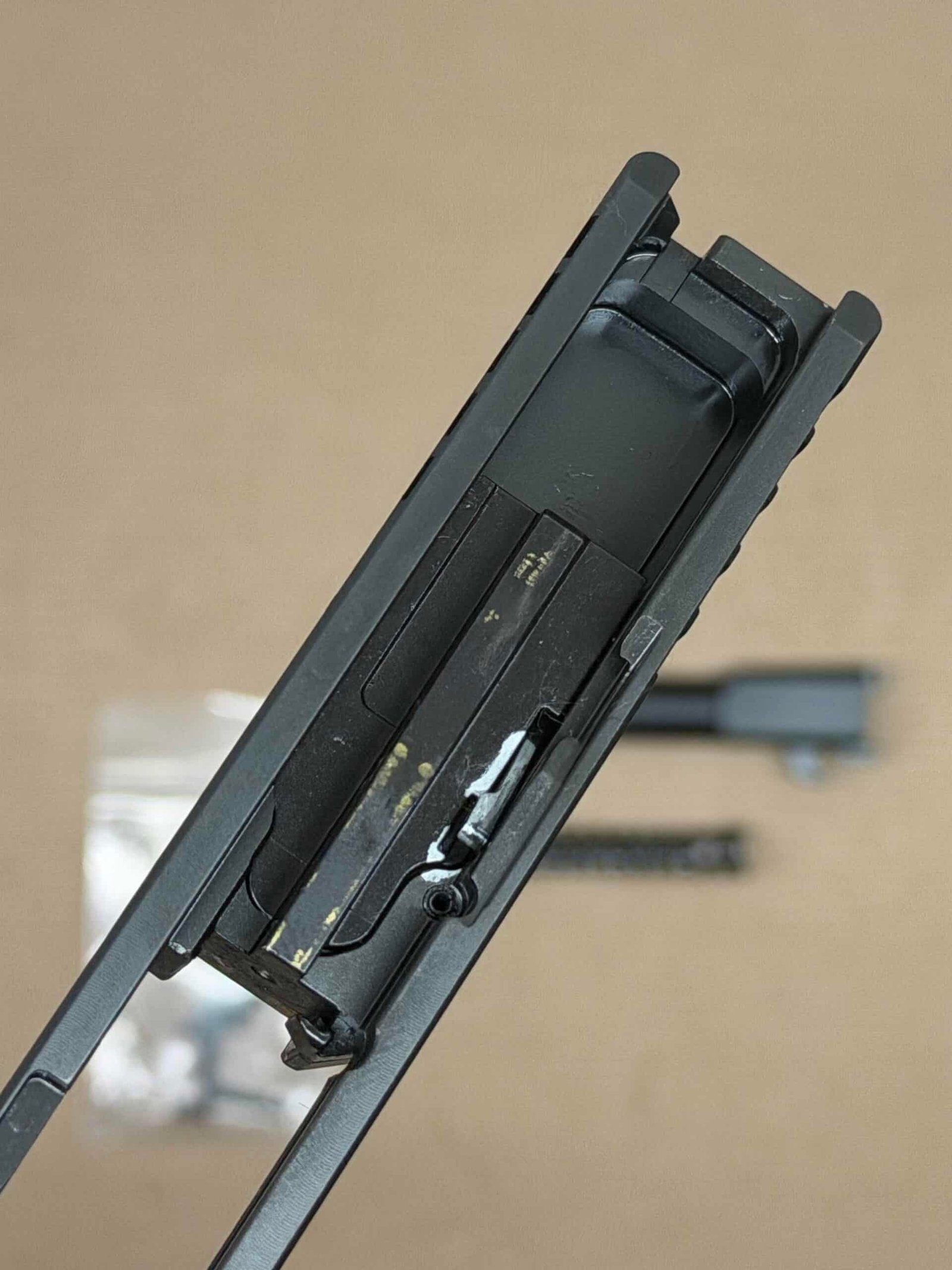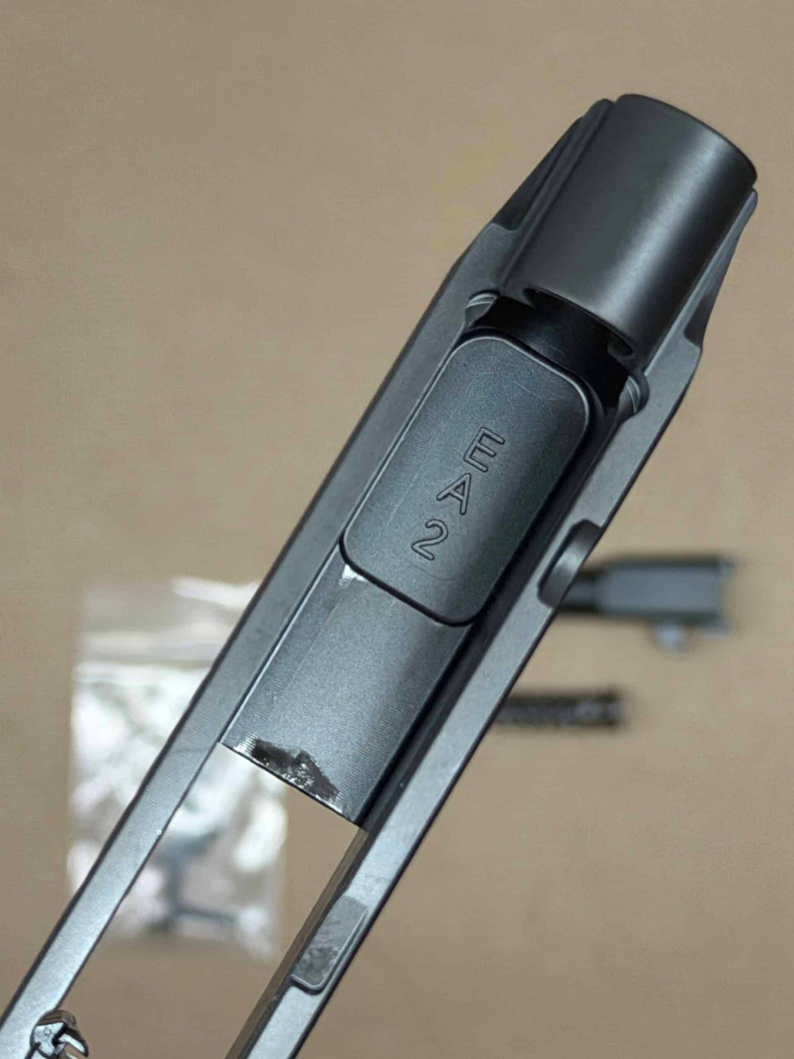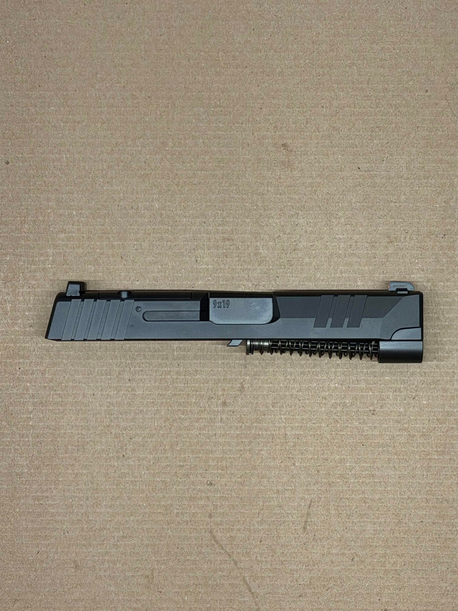 - Complete Slide Assembly – Includes slide, internal components, barrel, and recoil spring assembly.