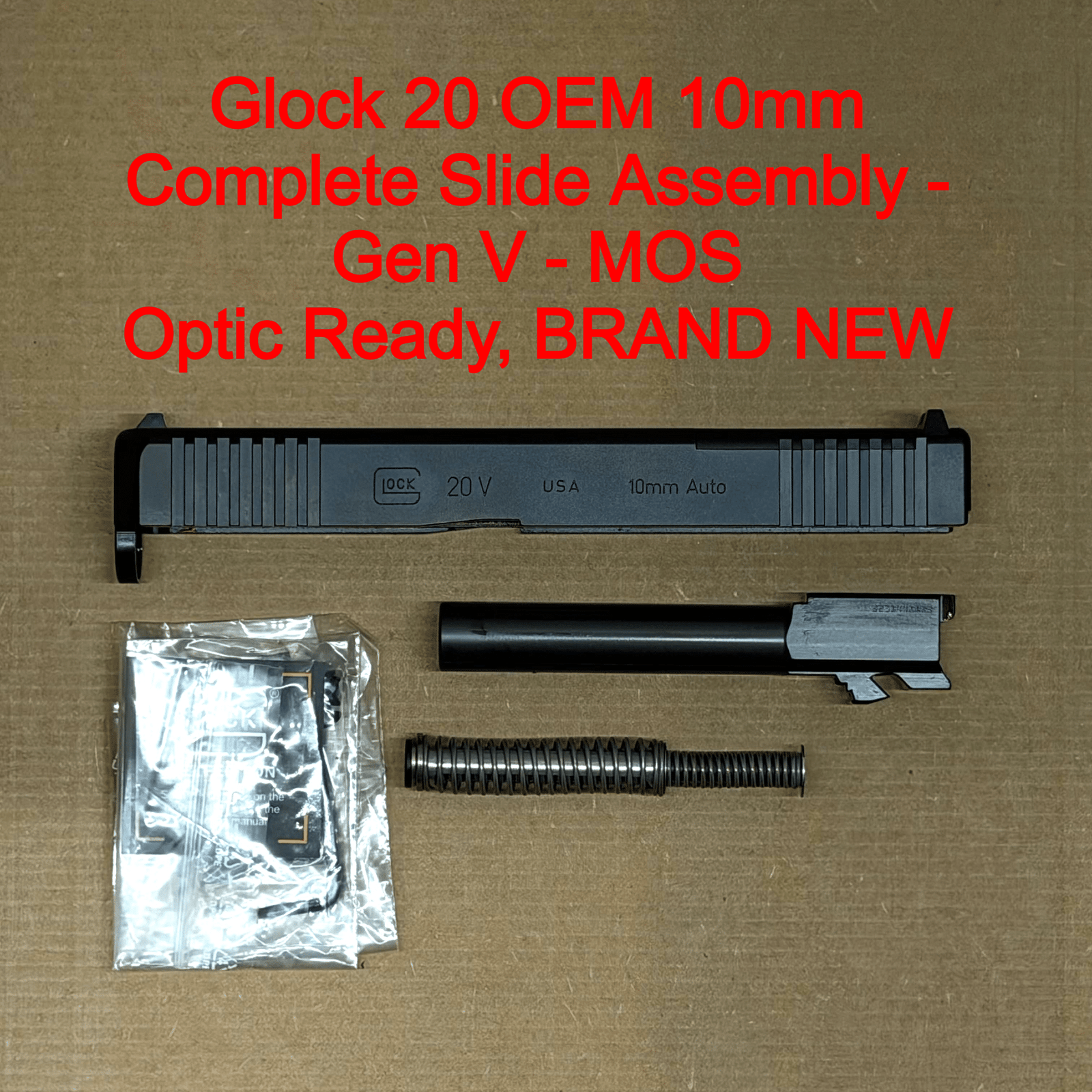 Upgrade or replace your Glock 20 Gen V MOS upper with this factory OEM complete slide assembly for optic-ready capability, factory reliability, and 10mm performance.