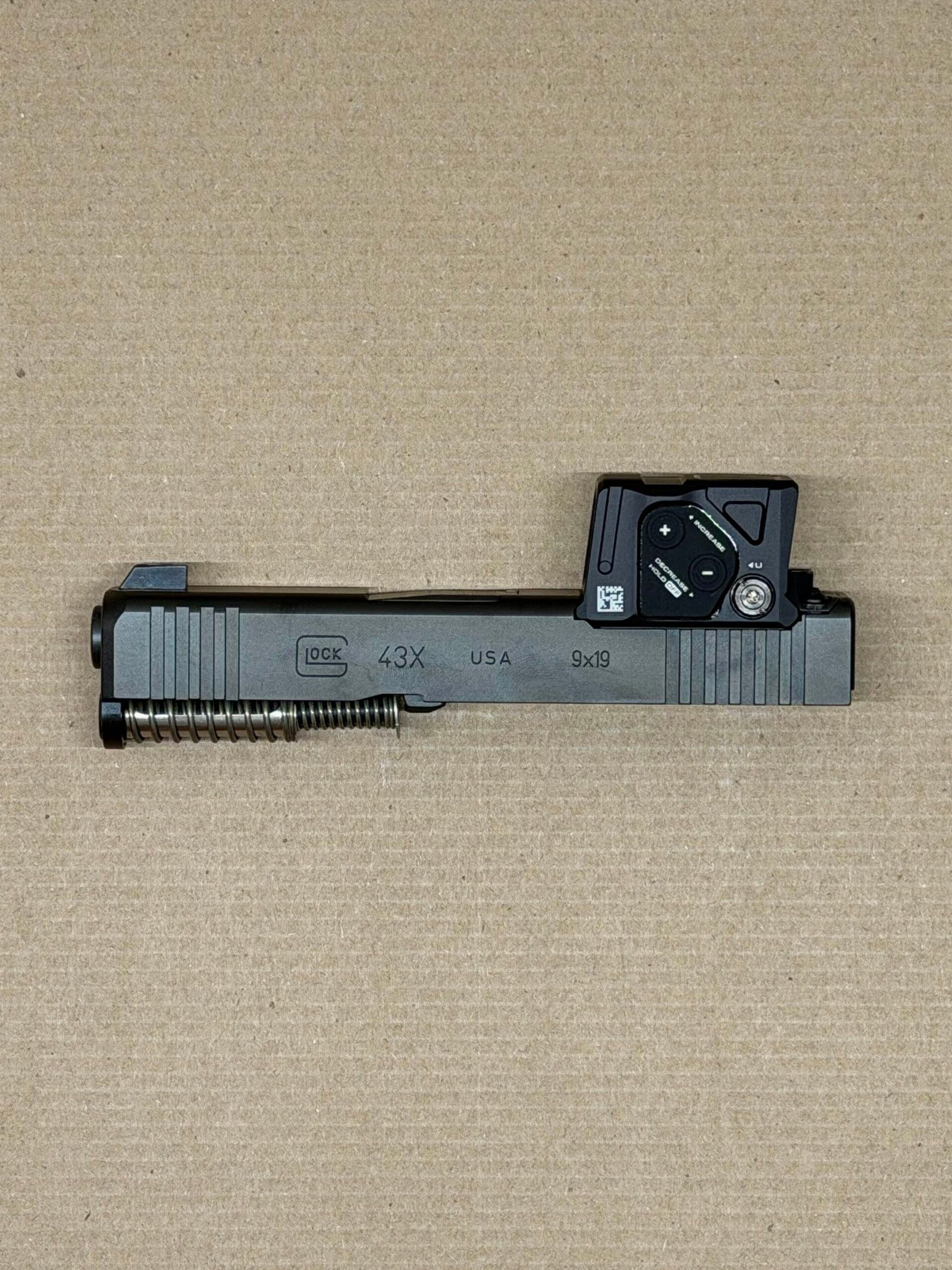 Upgrade or replace your Glock 43X MOS slide with this OEM complete slide assembly for factory reliability, optic compatibility, and long-term performance.