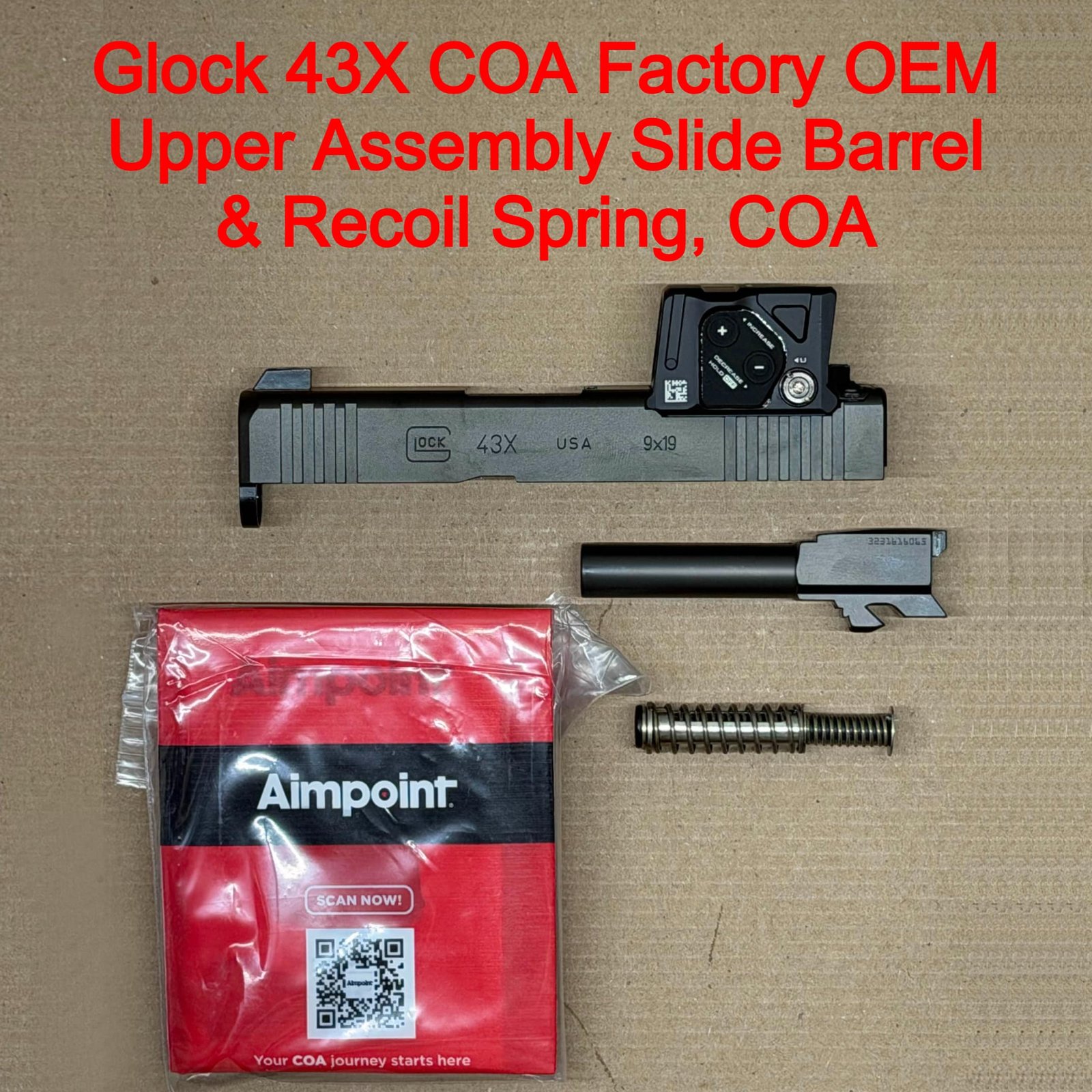 GLOCK 43X MOS OEM Complete Slide Assembly w/ Aimpoint COA – Optic Ready – BRAND NEW