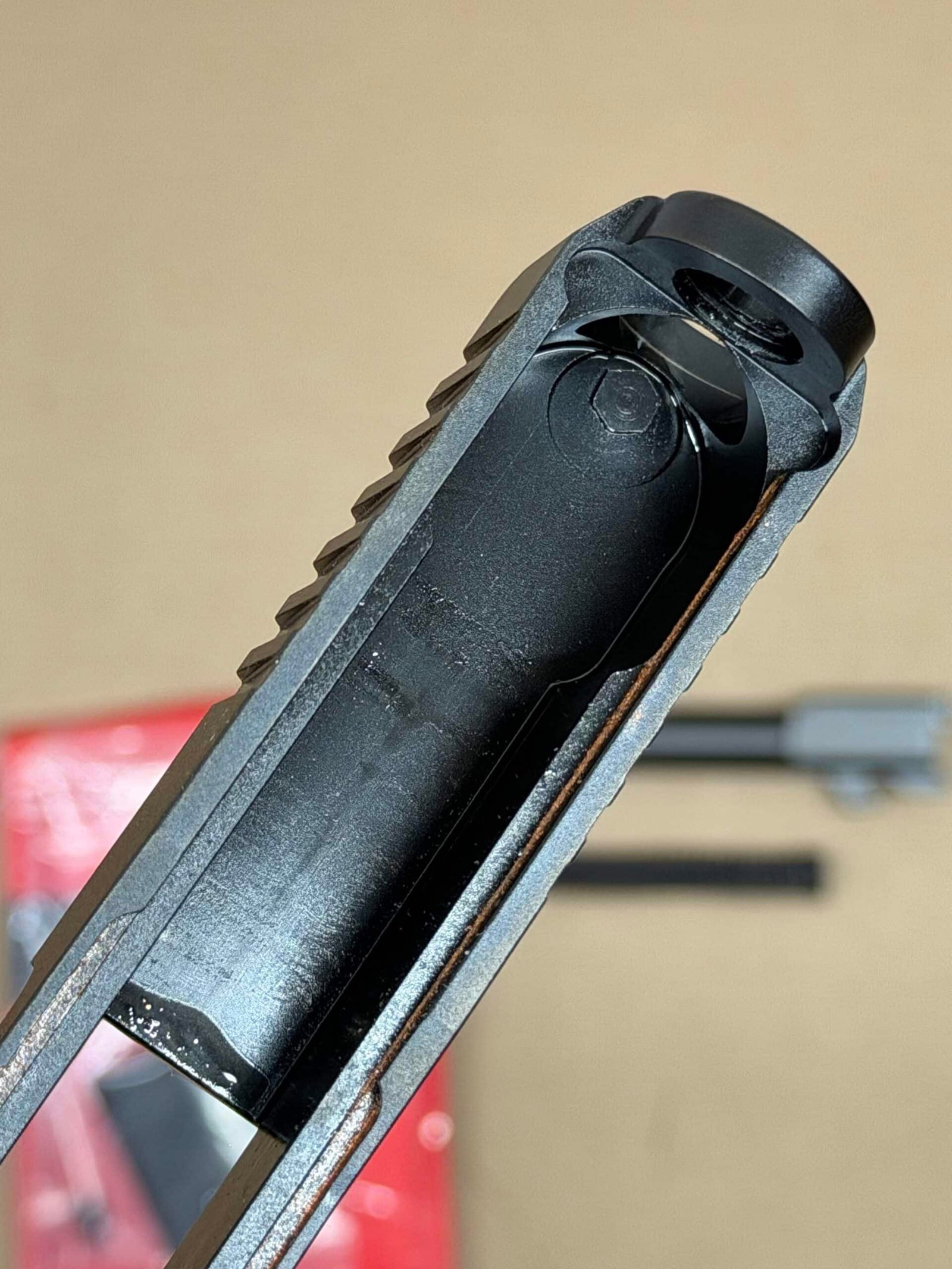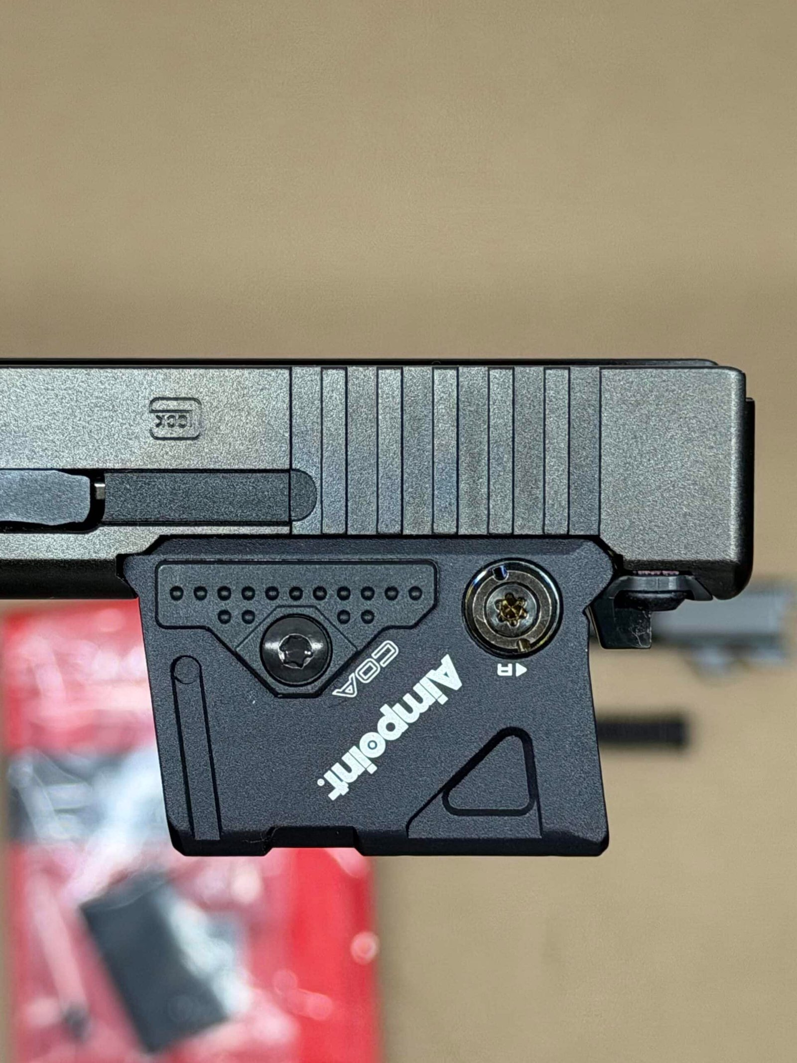 Featuring Glock’s A-CUT interface with a direct-mounted Aimpoint COA red dot, this slide provides a deeper optic seating for increased stability, improved durability, and faster target acquisition while maintaining OEM fit and function.