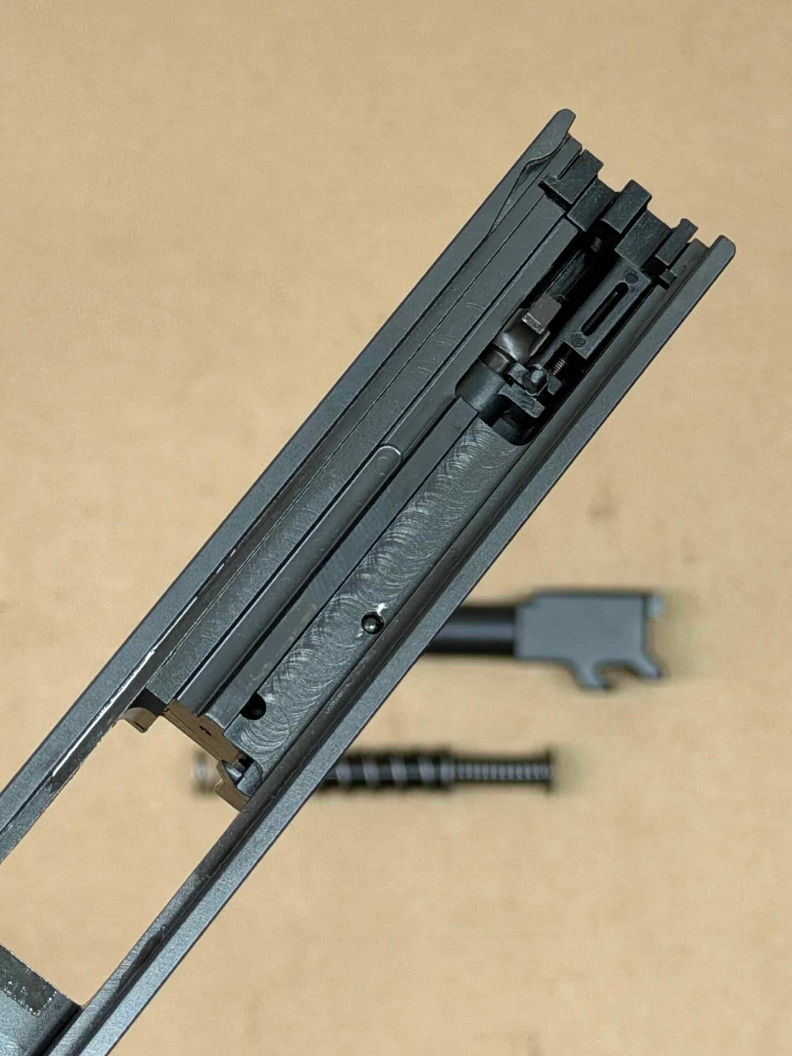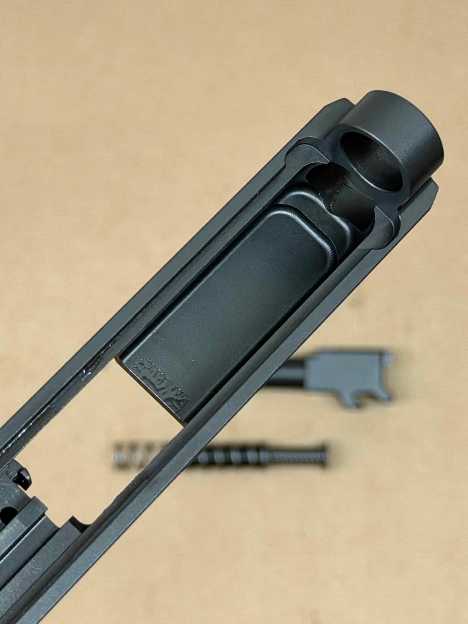 - Complete P-10 S Slide Assembly – Includes fully assembled slide with barrel and recoil system.