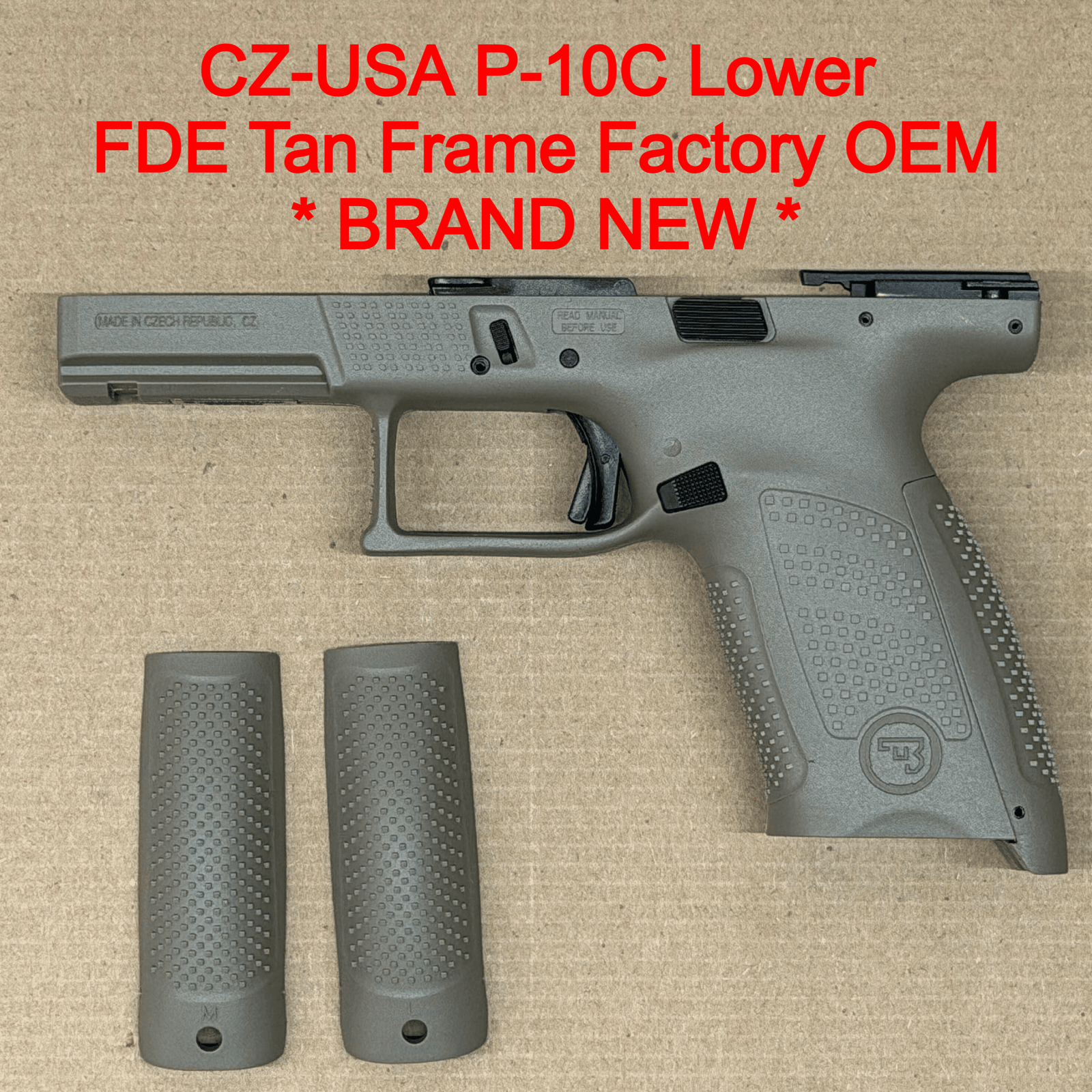 This is a brand new, factory OEM CZ-USA P-10 C lower frame assembly in Flat Dark Earth (FDE). Designed for durability and everyday performance, this complete lower frame comes fully assembled and includes all internal components. Built with a rugged fiber-reinforced polymer construction, the P-10 C platform delivers excellent ergonomics, reliability, and control in a compact size.