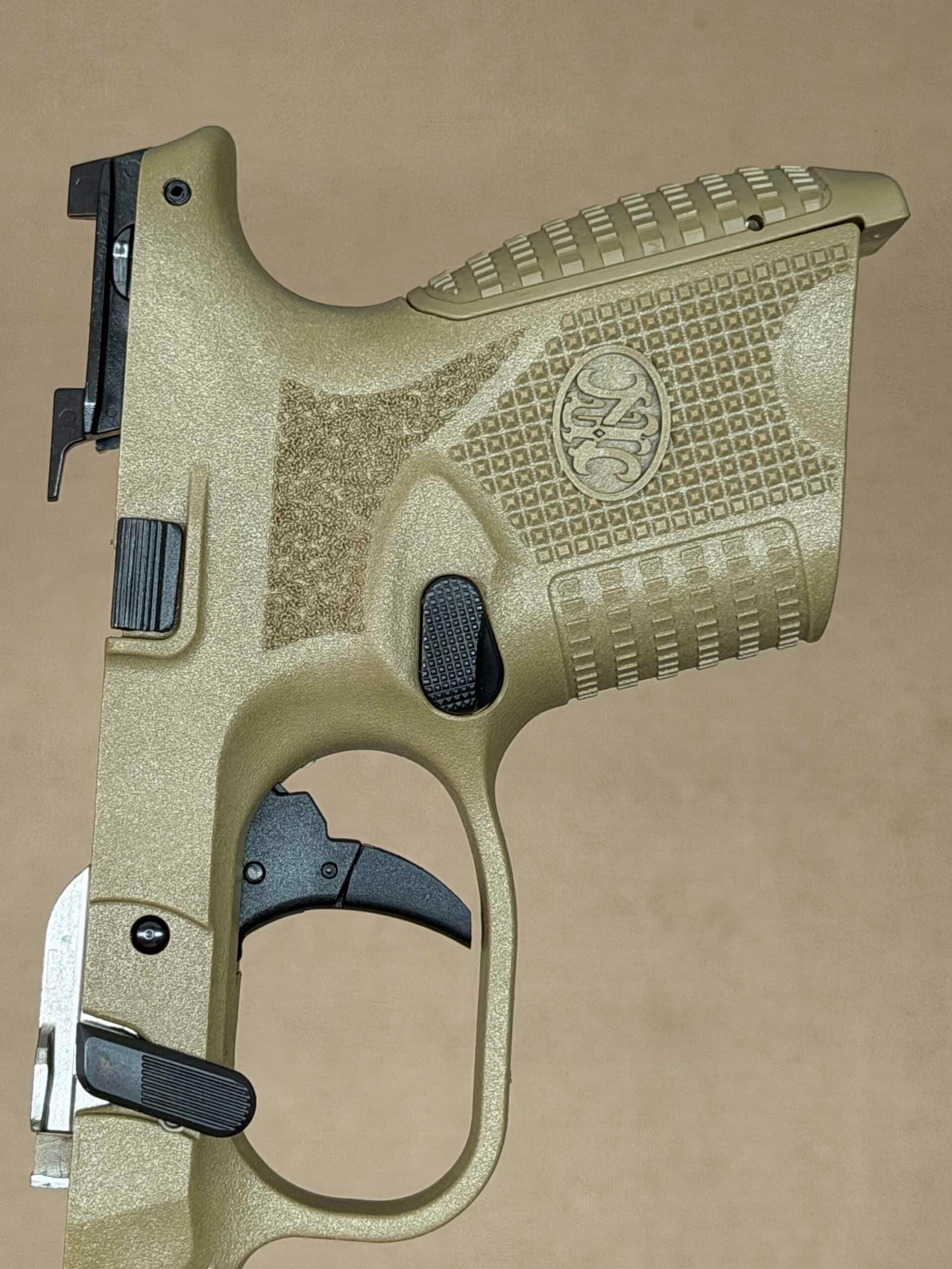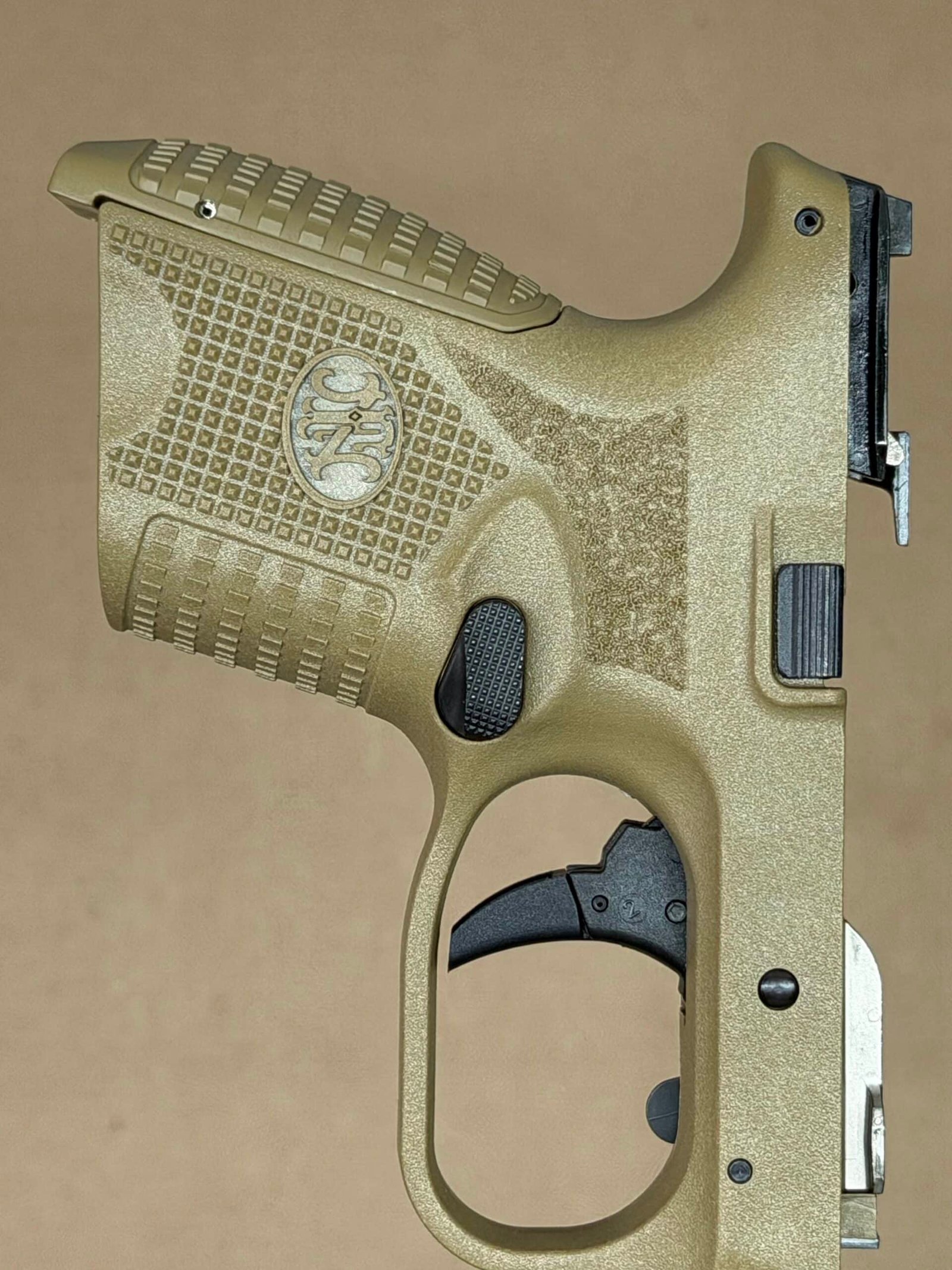 Upgrade your FN 509 Compact platform with this complete lower frame assembly in FDE, offering OEM reliability, enhanced ergonomics, and modern performance features.