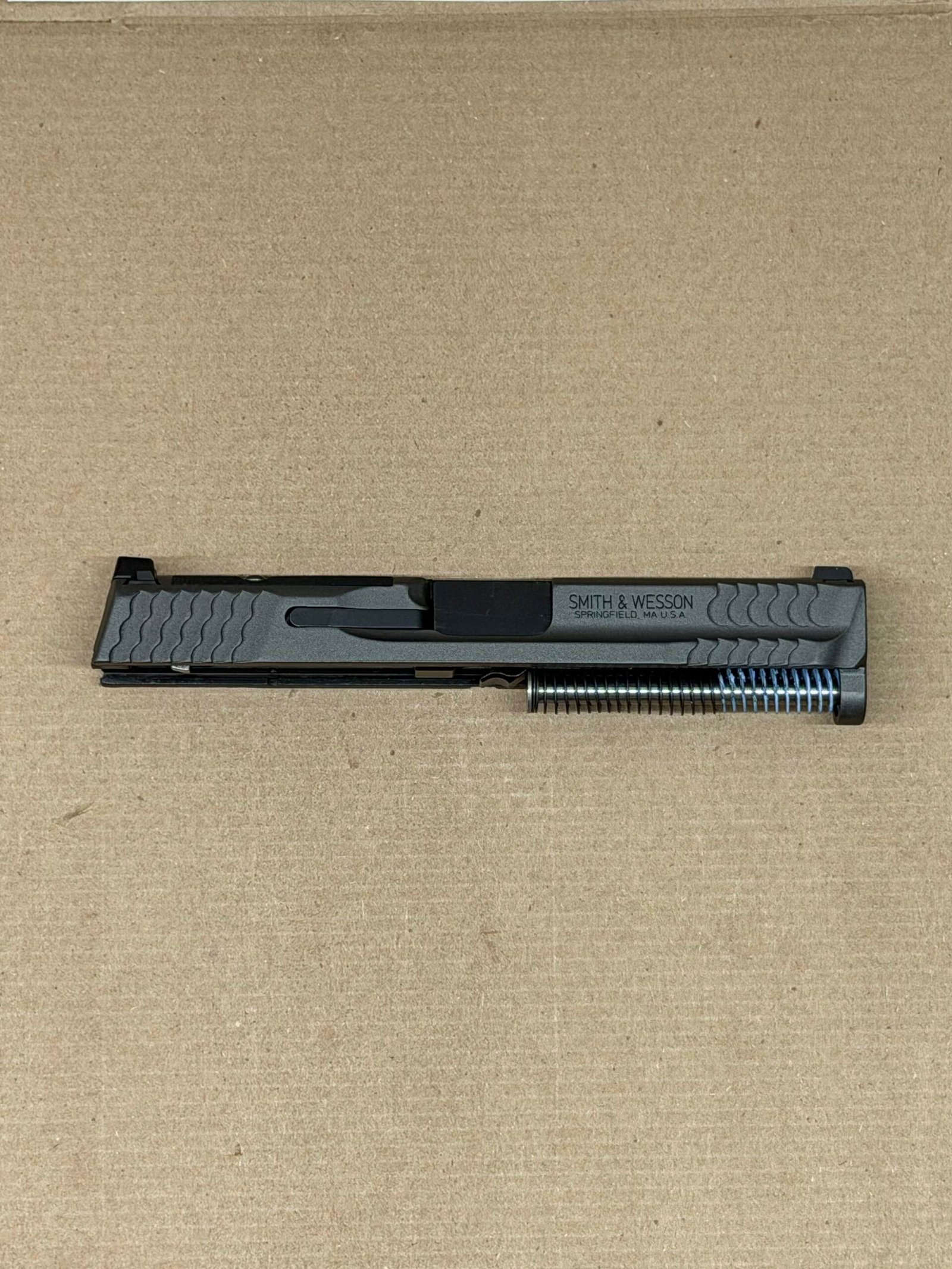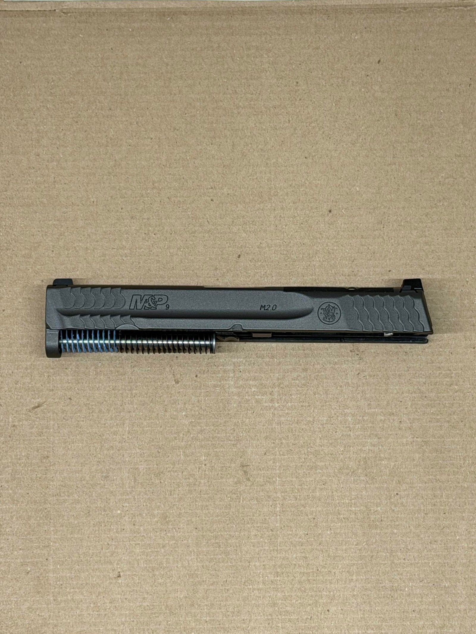 - Complete M&P 2.0 Metal Slide Assembly – Includes fully assembled slide with barrel and recoil spring.