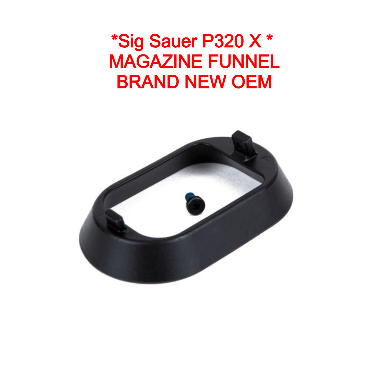 This brand-new Sig Sauer factory OEM magazine funnel is designed for the P320 X-Series, ensuring proper fit, function, and long-term reliability. Manufactured to exact factory specifications using high-quality materials, this component is ideal for enhancing reload speed, maintenance, or replacement.