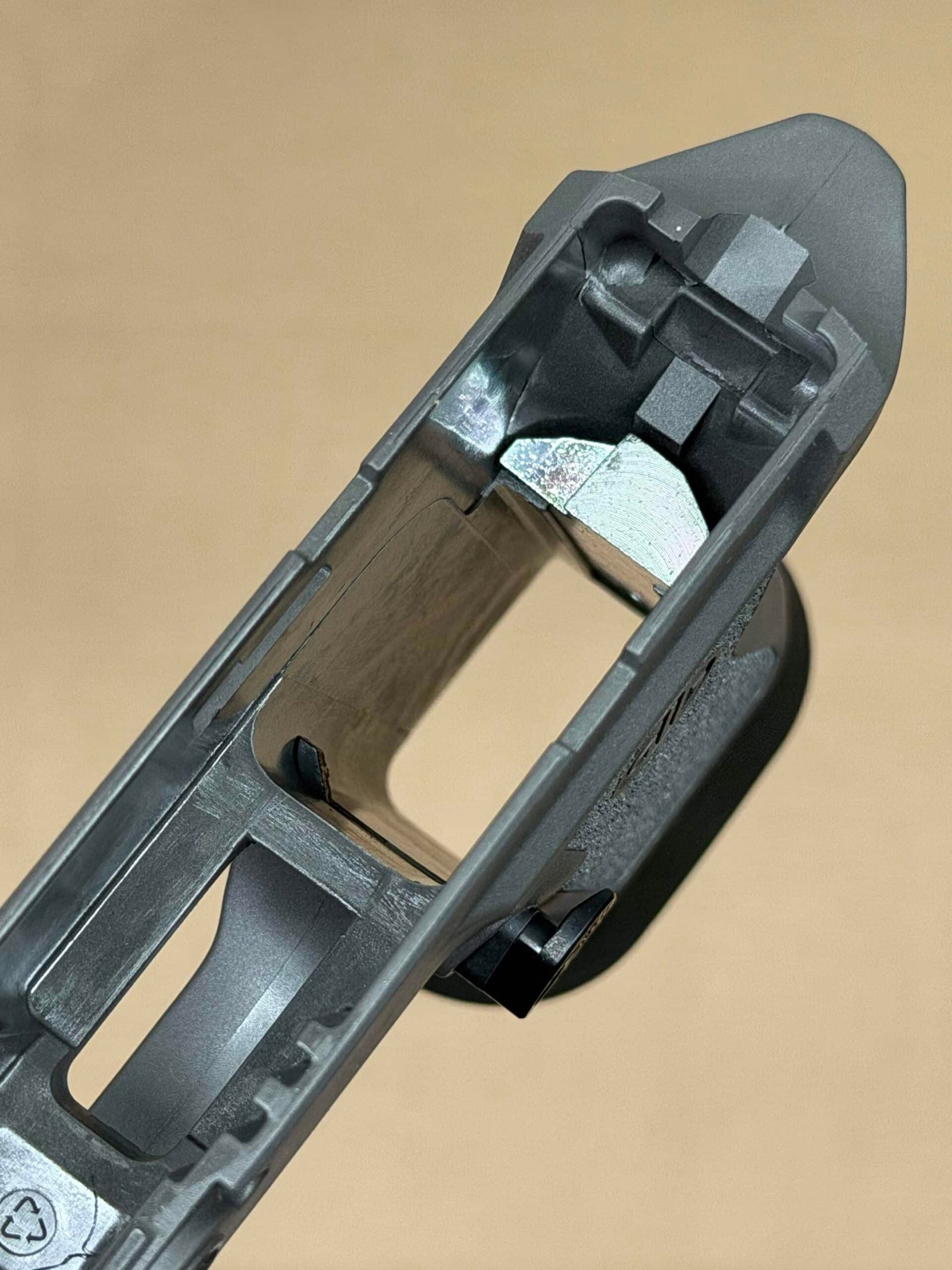 This grip module comes equipped with a Springer Precision P320 extended magazine release paddle (right-hand), enhancing reload speed and control for performance-focused shooters.