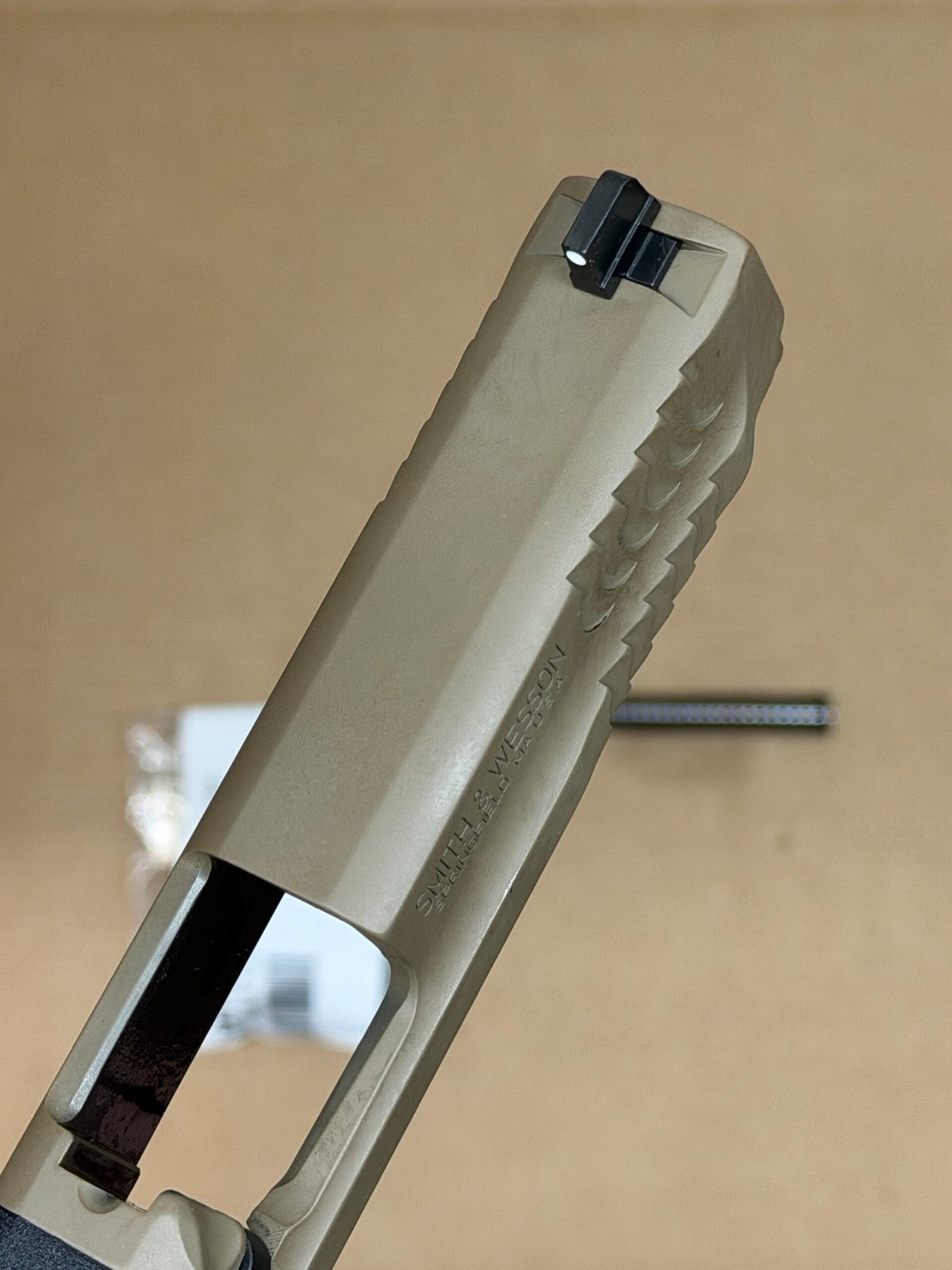Upgrade your M&P 9 with the M&P 2.0 Full Size FDE Tan Slide—perfect for replacement or customization.