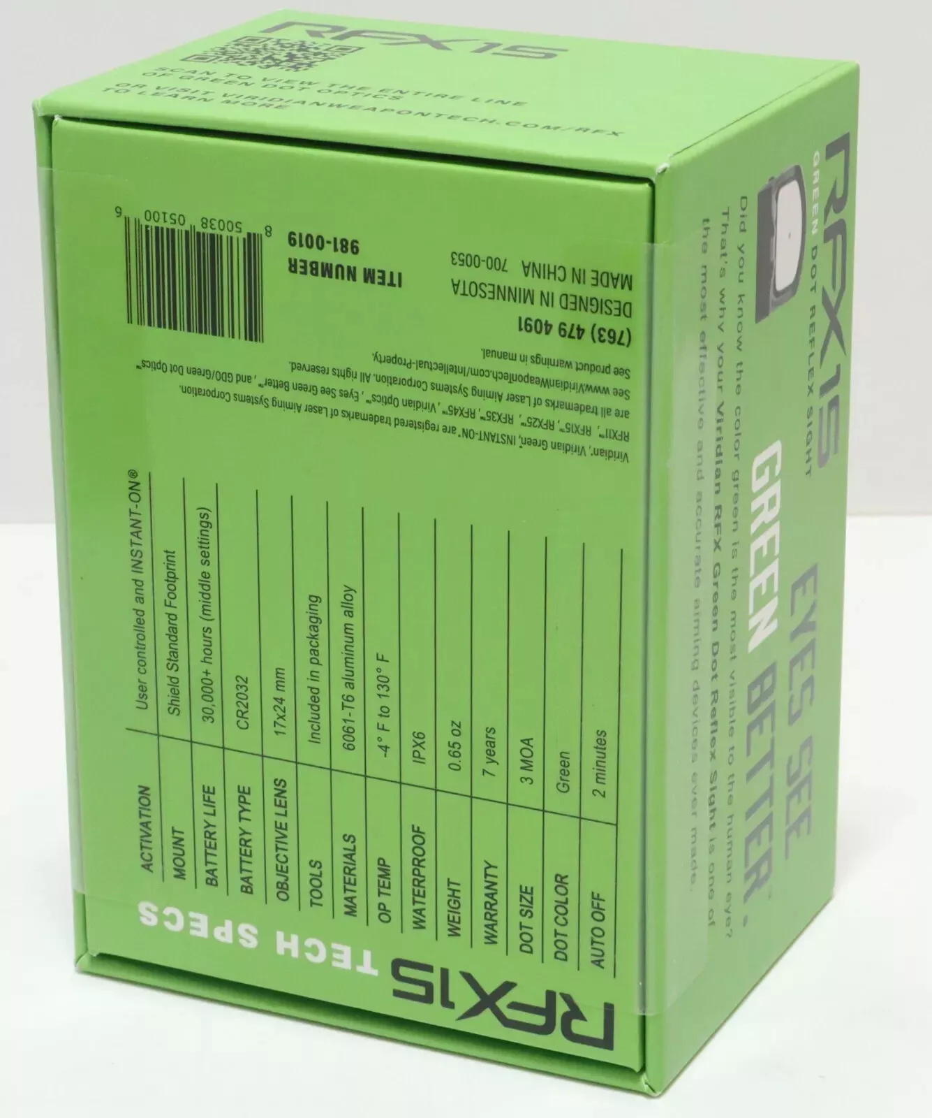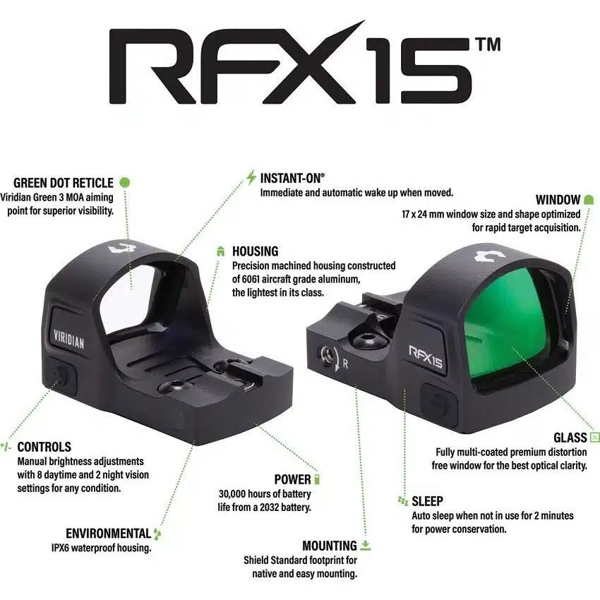 NEW – FACTORY Viridian Optics RFX15 3 MOA Green Dot RMSc Red Dot Optic