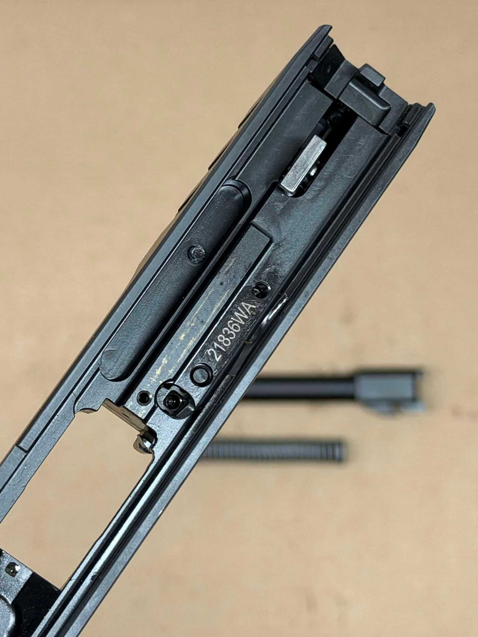 - Complete PDP Slide Assembly – Includes fully assembled slide with barrel and recoil system.