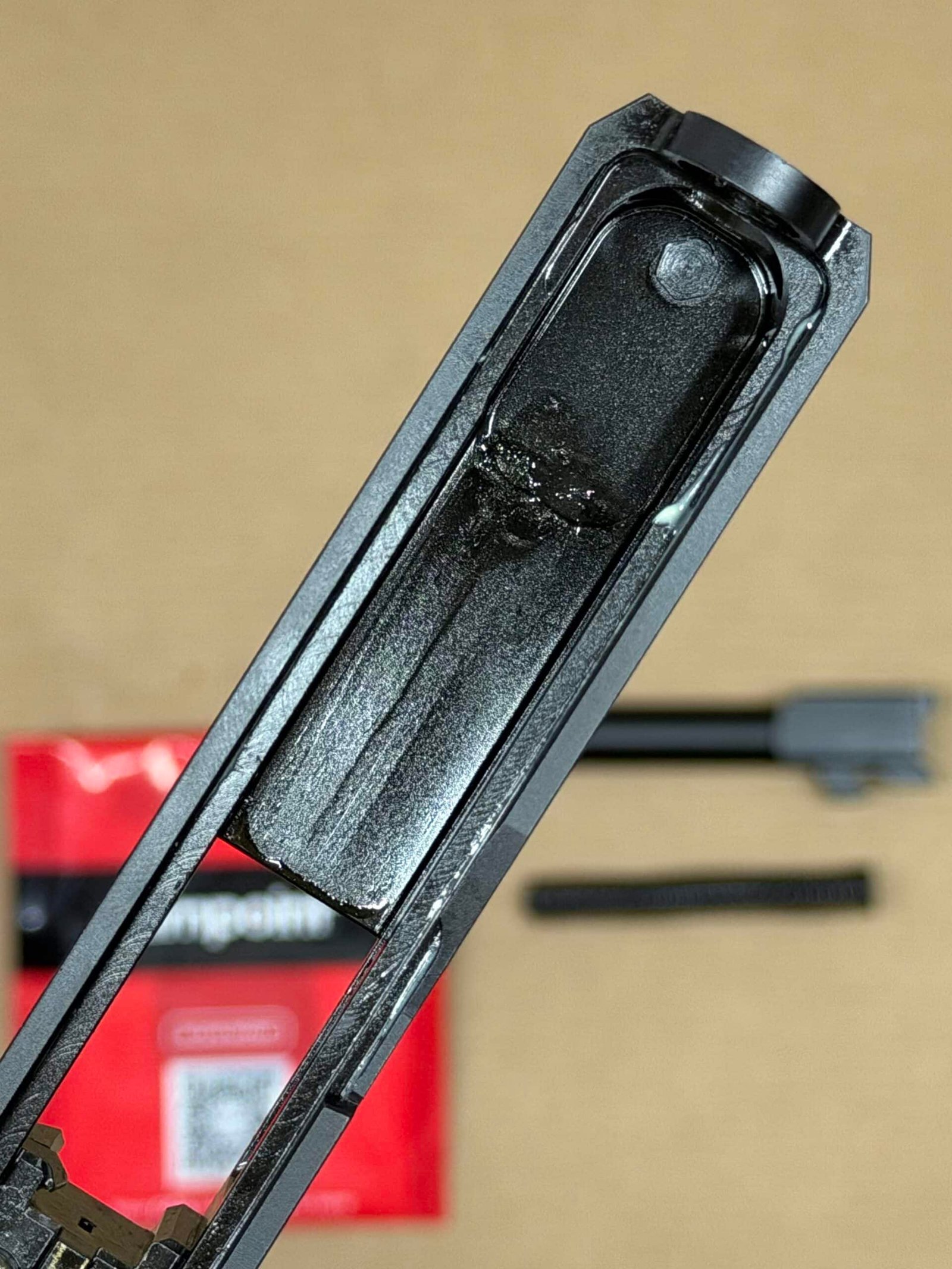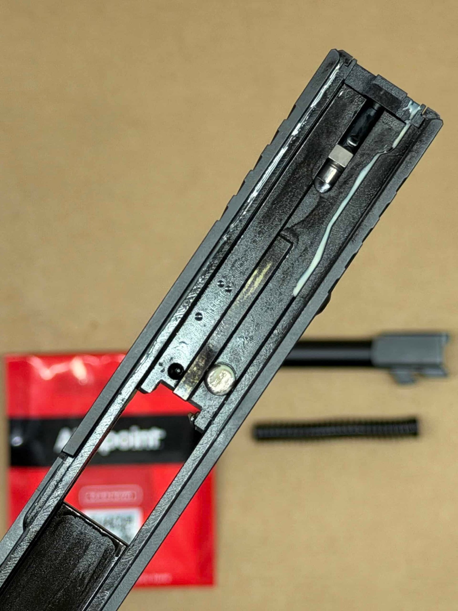 - Complete Slide Assembly – Includes slide, internal components, barrel, and recoil spring assembly.