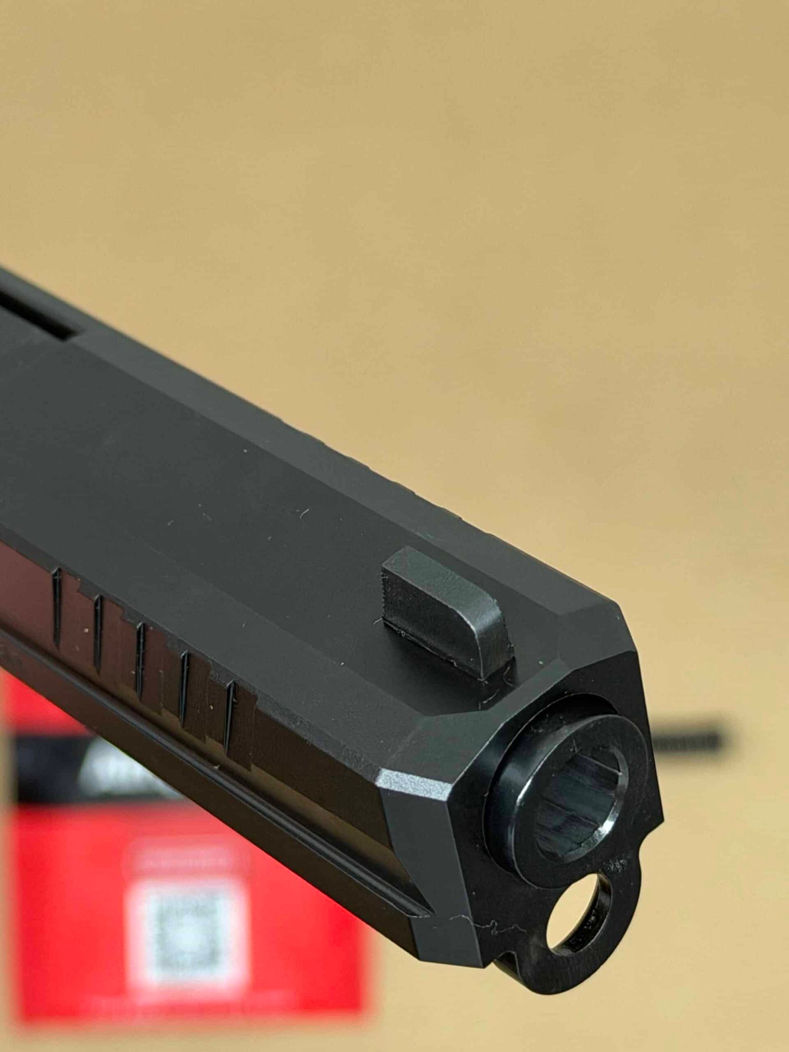 Engineered for modern performance, this optics-ready slide features an Aimpoint COA footprint, allowing direct mounting of the optic for improved durability, faster target acquisition, and enhanced shooting precision. The included tritium co-witness sights ensure visibility in low-light conditions while maintaining a consistent sight picture.