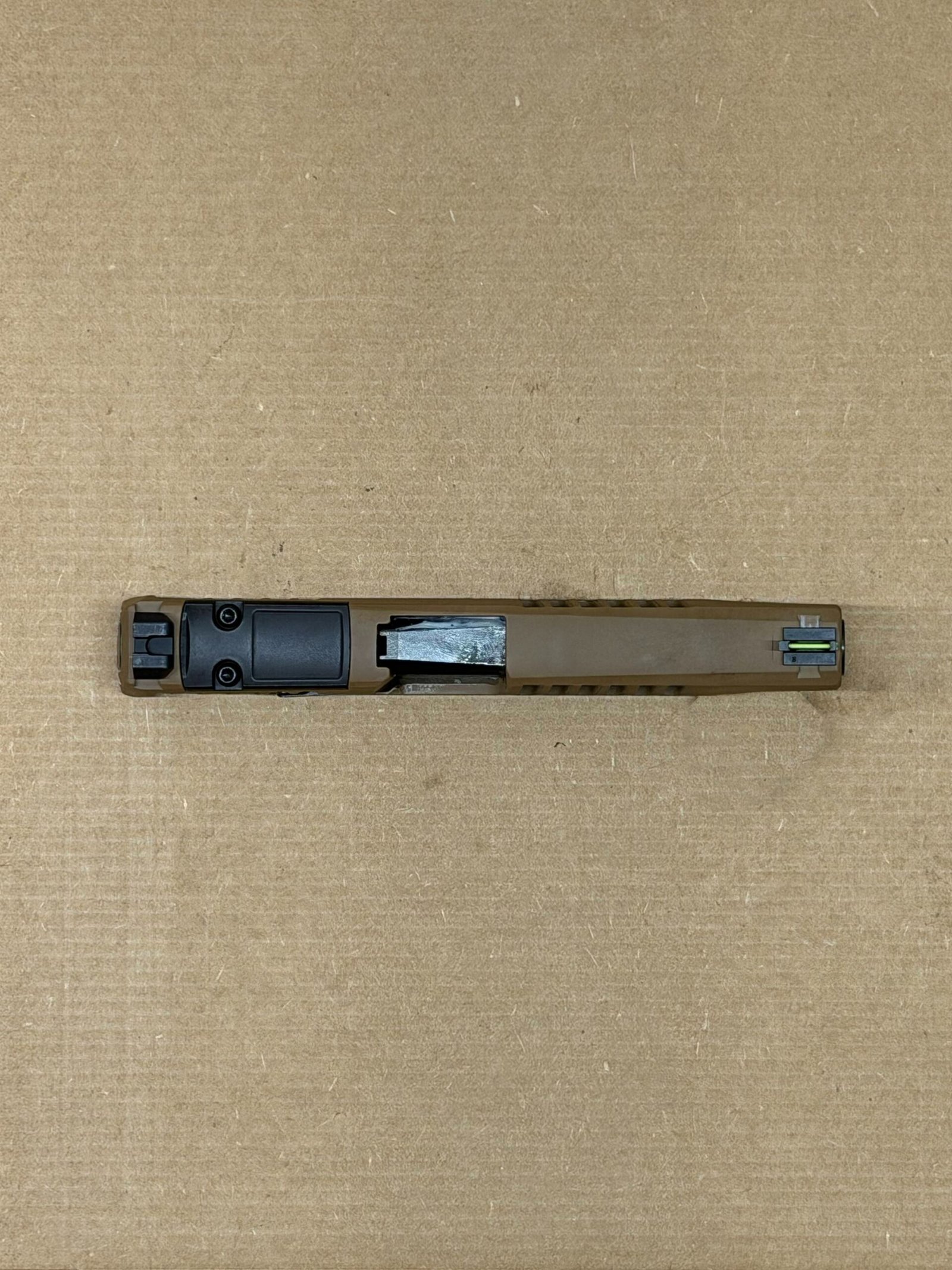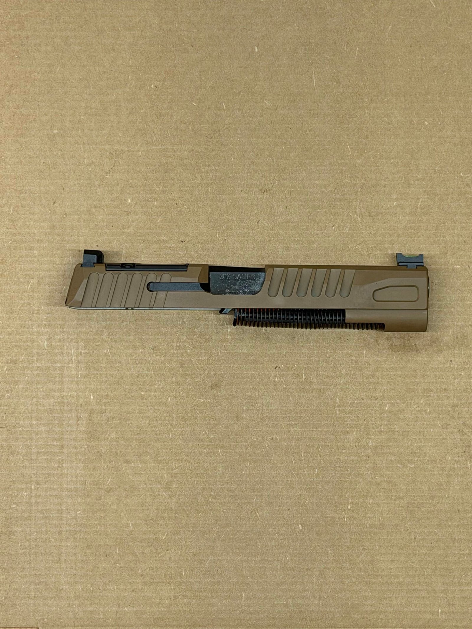 Upgrade your Sig Sauer P365 with this OEM FDE Tan optic-ready Fuse slide assembly for factory-correct performance, reliability, and appearance.