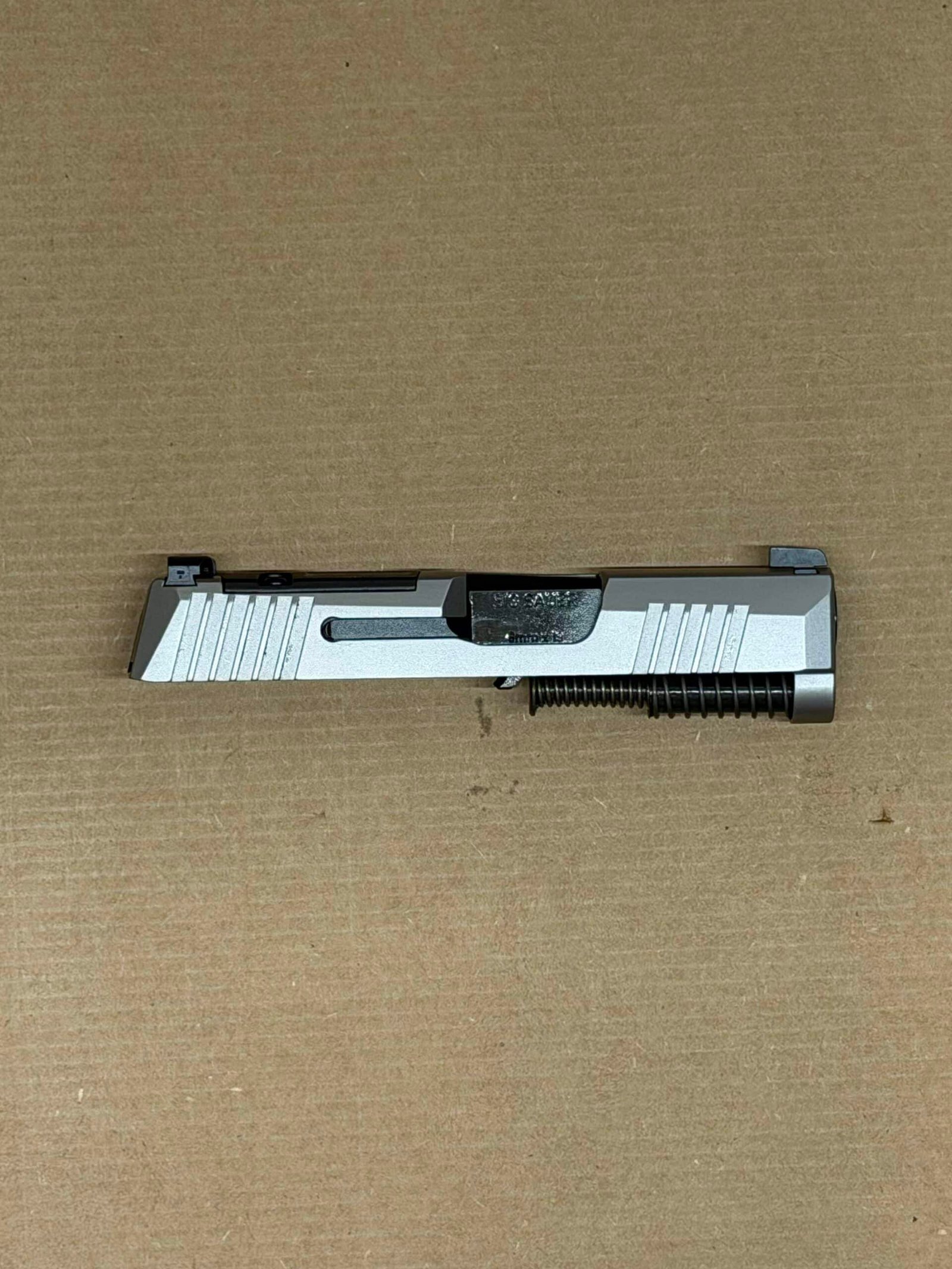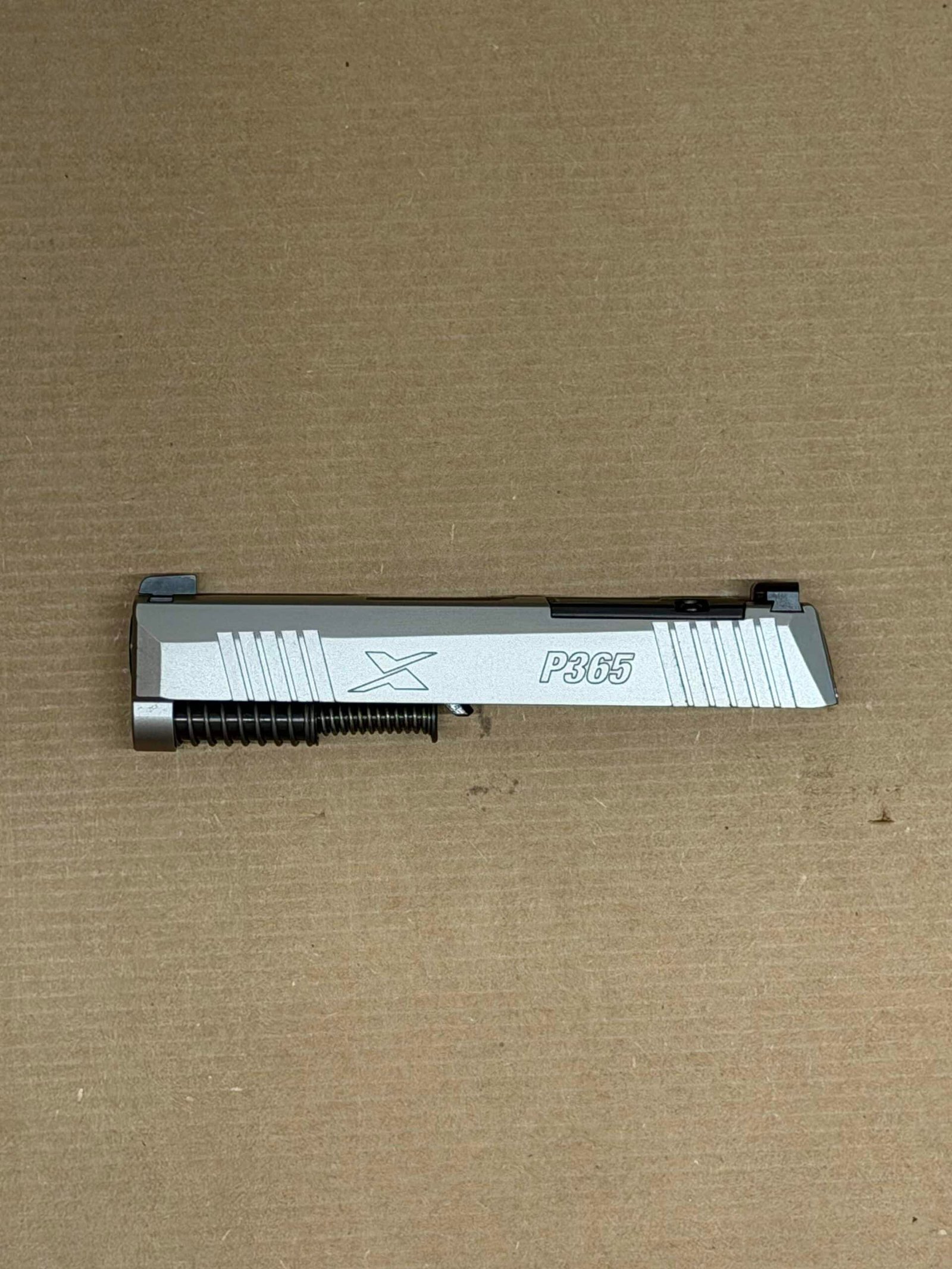 - Complete P365X Slide Assembly – Includes slide, 3.1″ barrel, and recoil spring assembly, fully assembled and ready to install.