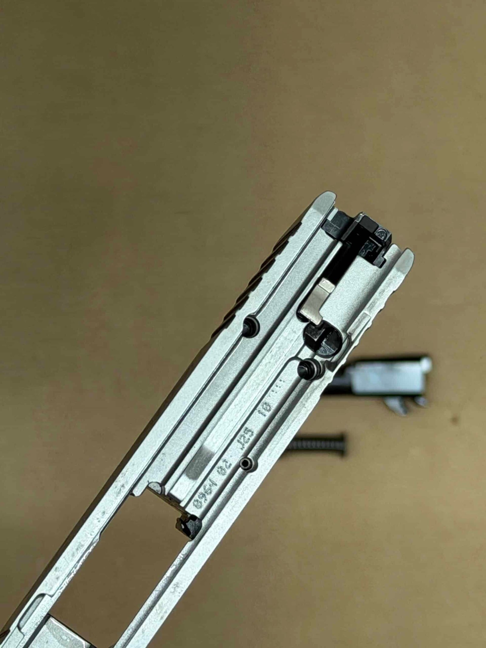 Precision-machined from factory Sig Sauer components, this complete slide delivers consistent cycling, dependable accuracy, and a clean stainless silver appearance for a distinctive factory look.