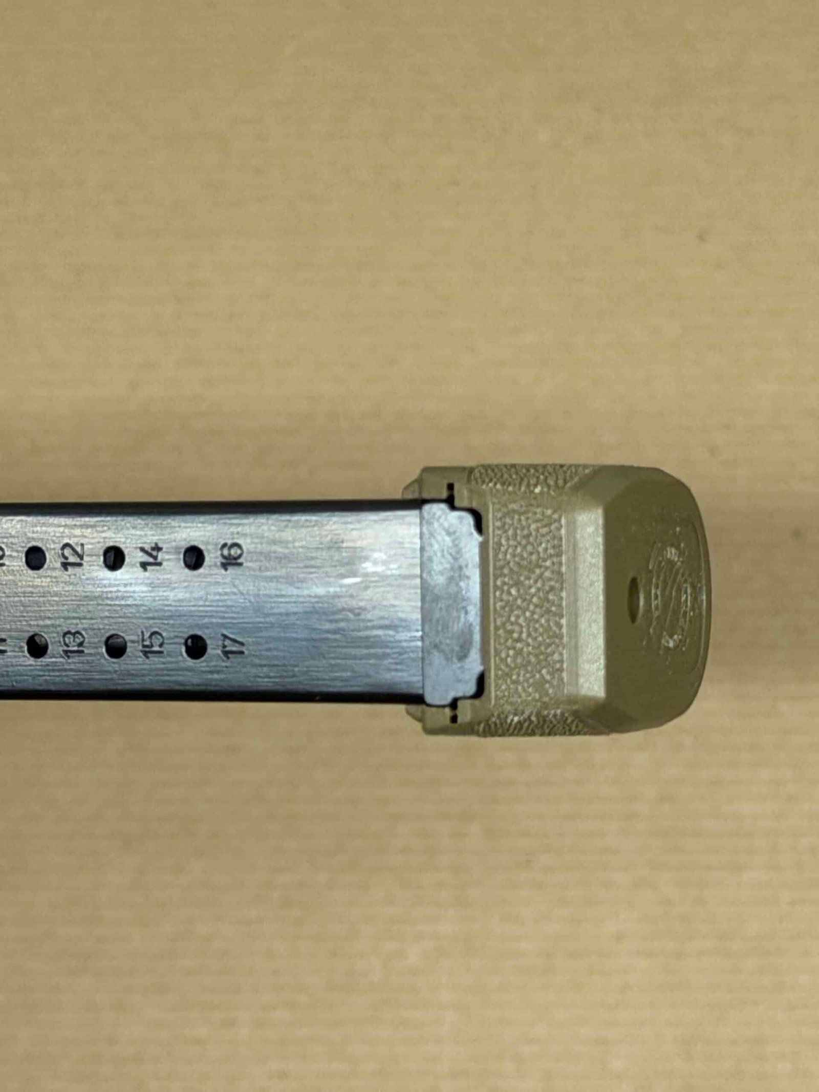 - Durable Steel Construction – High-strength steel body with robust feed lips and an FDE Tan polymer baseplate.