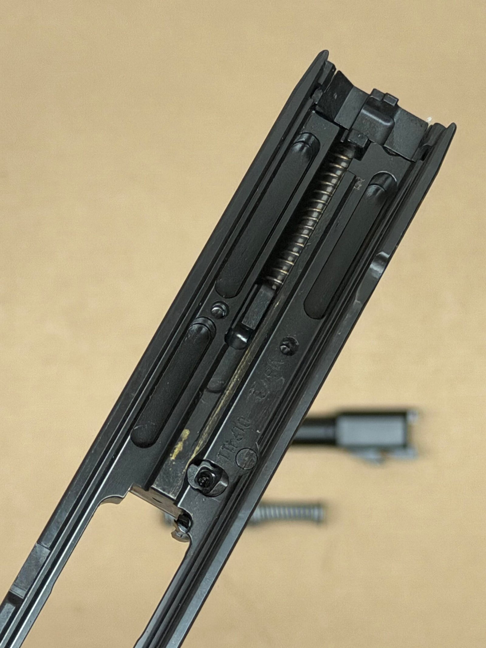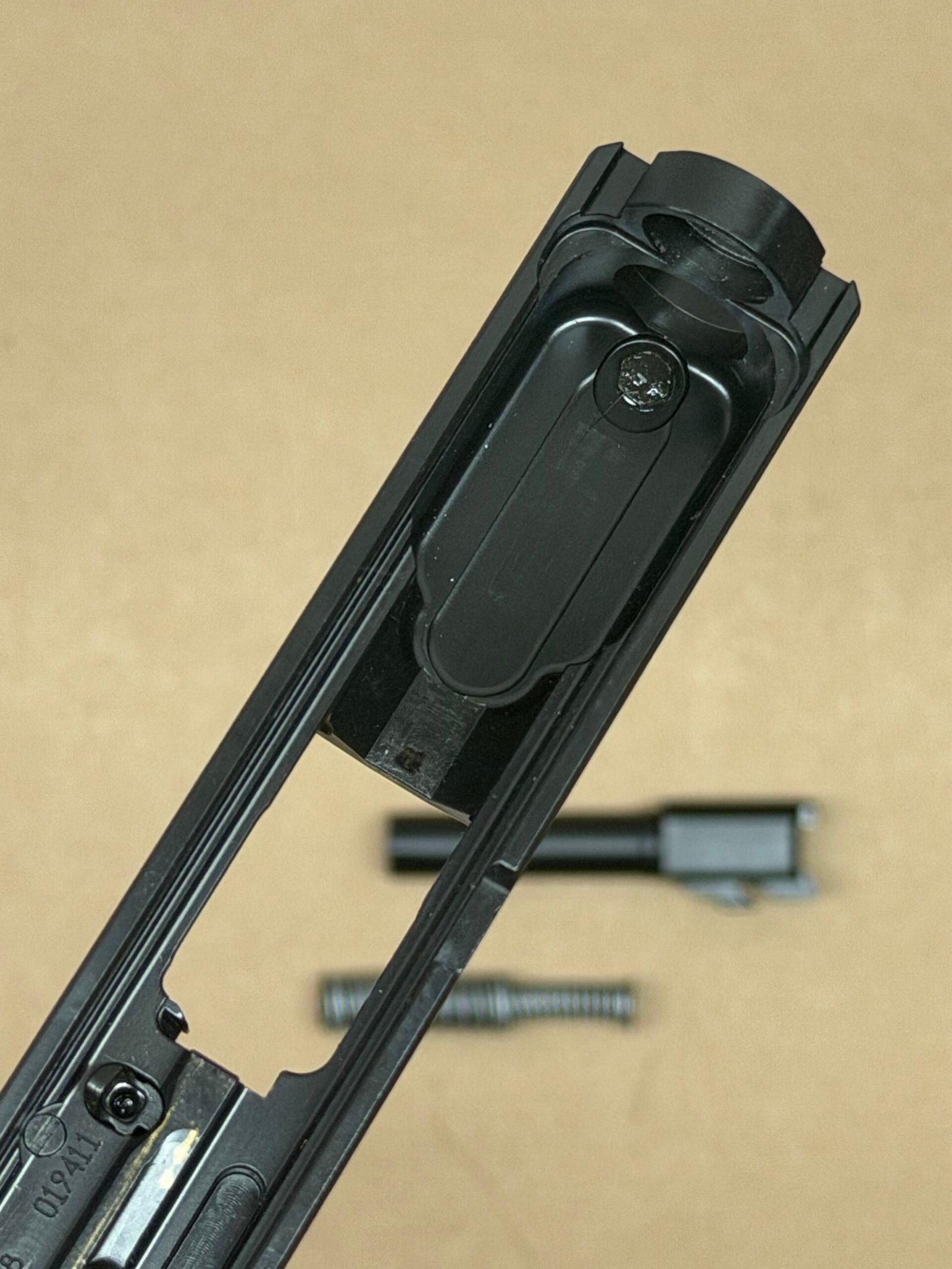 - Complete Slide Assembly – Includes slide, internal components, barrel, and recoil spring assembly.