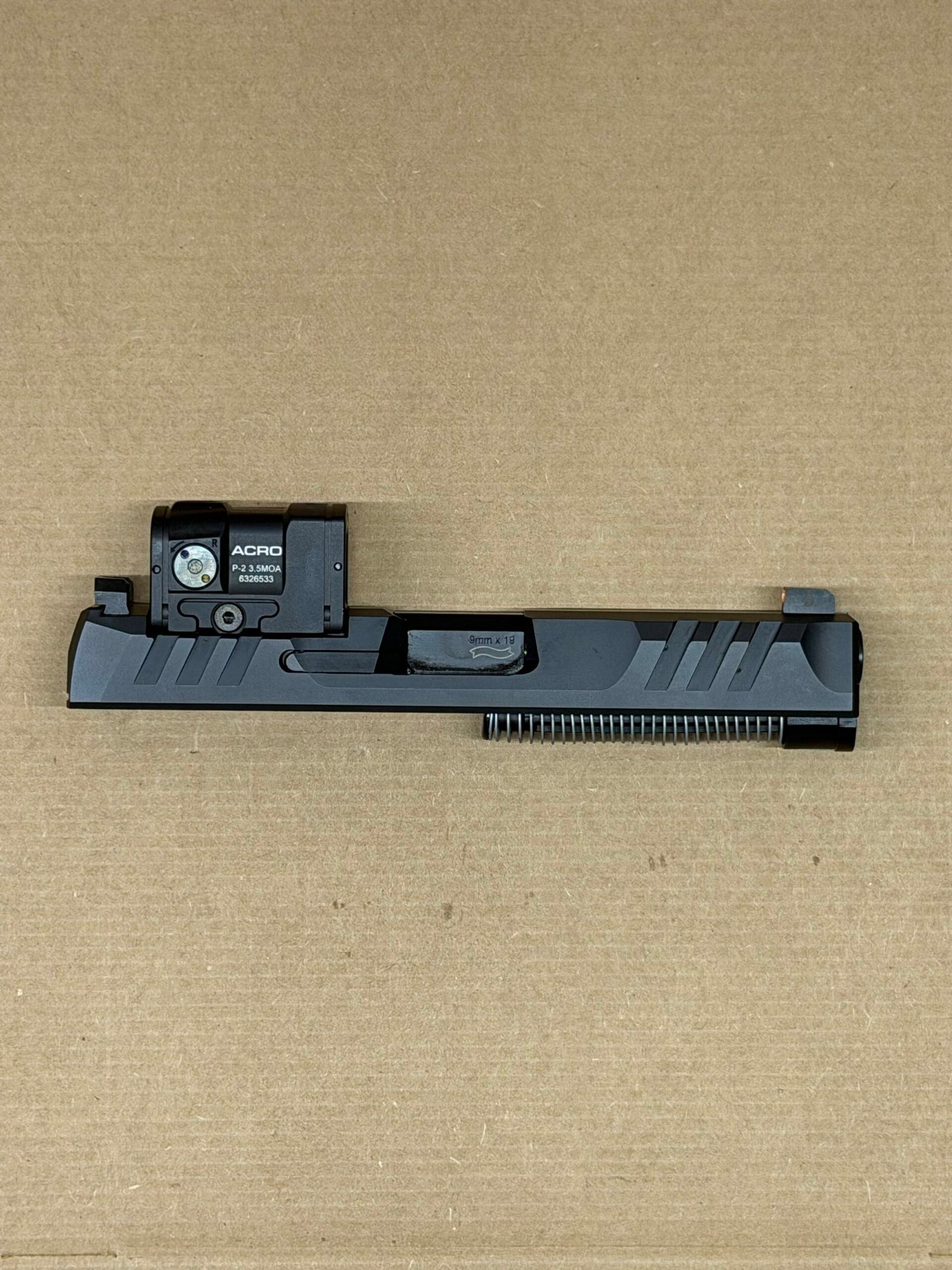 - Complete Slide Assembly – Includes slide, internal components, barrel, and recoil spring assembly.