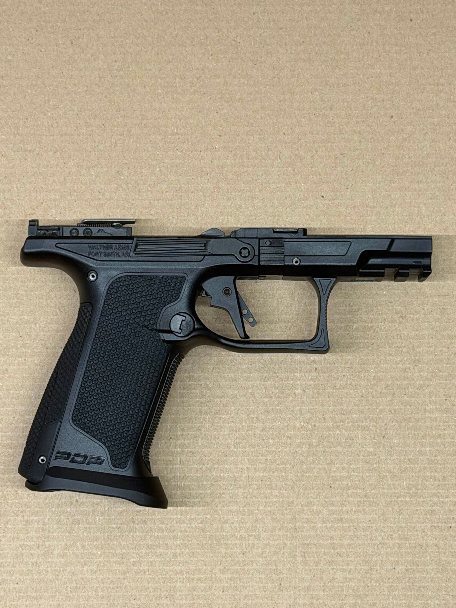 Upgrade your Walther PDP Pro SD F with this OEM lower frame assembly for enhanced ergonomics, control, and factory-correct performance.
